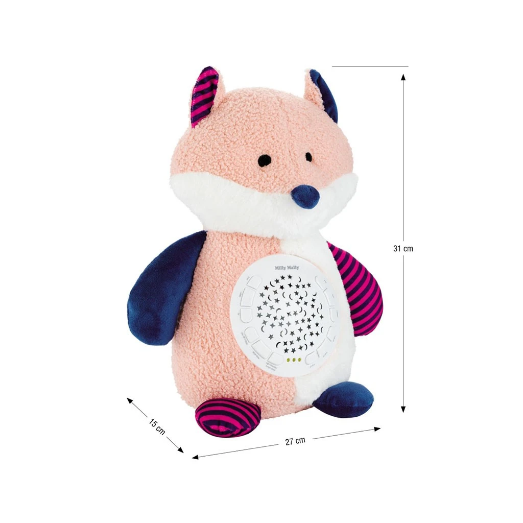 Plyšový zaspávač líška s projektorom Milly Mally vytvára pokojnú atmosféru pred spaním, pomáha deťom zaspať a stáva sa ich obľúbeným spoločníkom pre chvíle odpočinku aj sladkých snov.