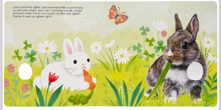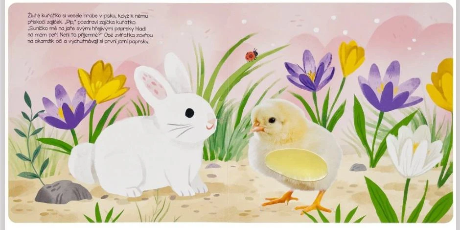 Poznaj v tejto zvukovej knihe spolu so zajačikom rôzne zvieratá, zaži s nimi jarné dobrodružstvo a zisti, aké vydávajú zvuky. Môžeš si ich aj pohladiť!