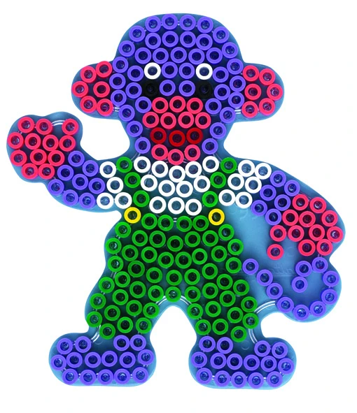 Priehľadná podložka v tvare opice je určená na tvorbu so zažehľovacími korálkami HAMA MAXI s priemerom 10 mm. Ponúka 230 hrotov a jej rozmery sú 21,5 × 20 × 1 cm. Vďaka priehľadnému prevedeniu je možné podložku položiť na predlohu a tvoriť podľa nej v pomere 1:1, napríklad s využitím inšpiratívnej knižky H399-17.