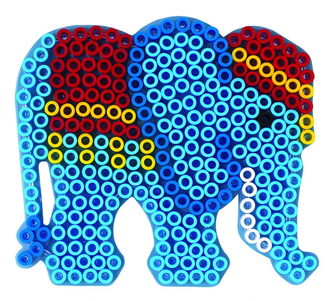 Priehľadná podložka v tvare slona je určená pre zažehľovacie korálky HAMA MAXI s priemerom 10 mm. Obsahuje 280 hrotov a jej rozmery sú 17,5 × 19,5 × 1 cm. Vďaka priehľadnému prevedeniu je možné podložku položiť na farebnú predlohu a deti môžu ľahko skladať korálky podľa vzoru v mierke 1:1, napríklad za použitia inšpiratívnej knižky H399-17.