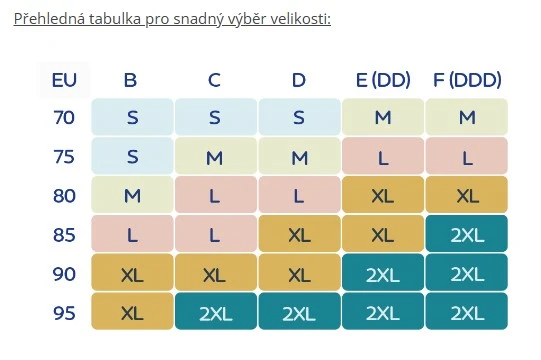 | Veľkosť podprsenky | S / M / L / XL / XXL |