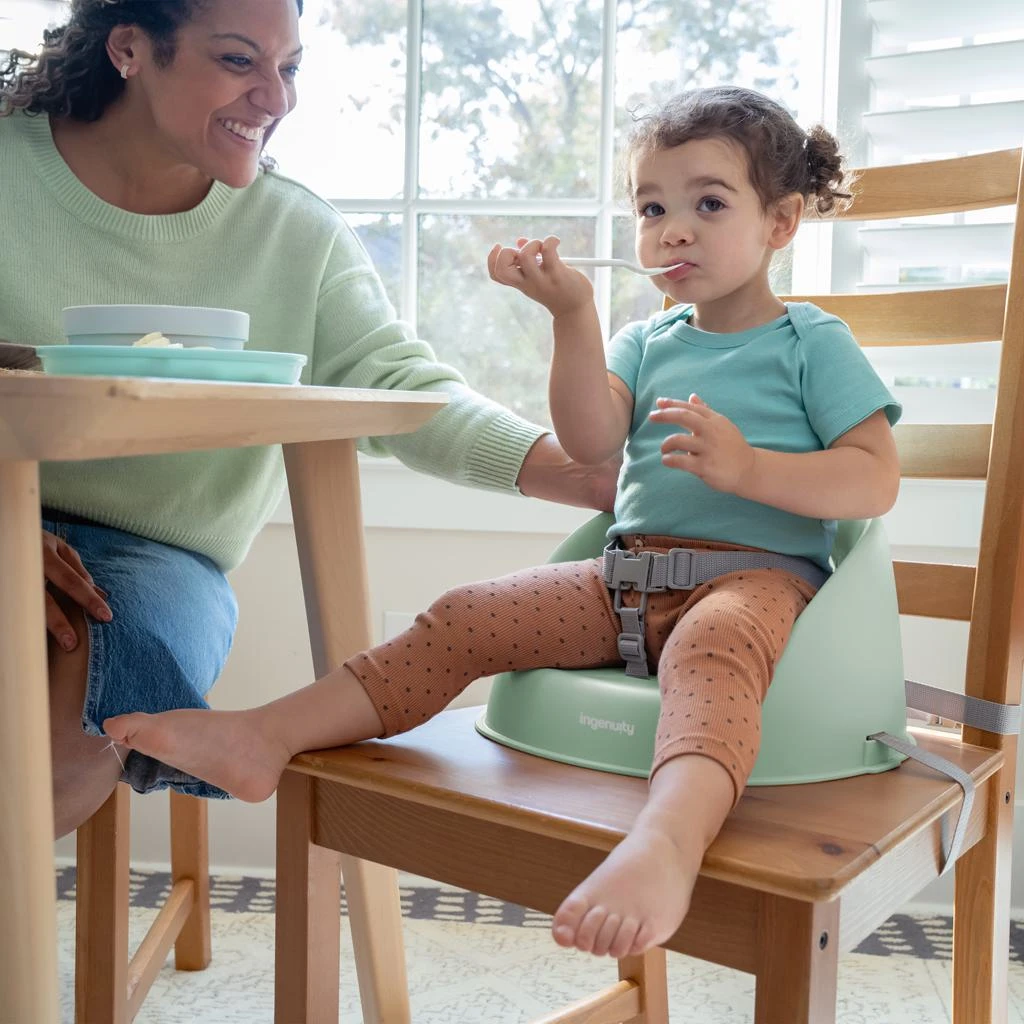 Zvládne aj tie najväčšie neporiadky – základňa sa jednoducho utiera vlhkou handričkou a popruhy sú odnímateľné a prateľné. O bezpečnosť sa postará 3-bodový bezpečnostný pás, ktorý udrží vaše dieťatko pevne na mieste počas jedla. Podsedák je kompatibilný s väčšinou jedálenských stoličiek, je ľahký, kompaktný a ľahko prenosný, takže ho môžete mať doma aj na cestách. Súčasť farebnej kolekcie Sun Valley od Ingenuity, ktorá spája funkčnosť a hravosť. Skvelý tip na darček pre budúcich rodičov – praktický a štýlový pomocník do každodenného života.