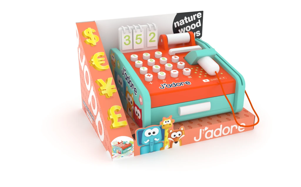 Pokladňa je vyrobená z kvalitného, prírodného dreva s hladkými hranami a veselým dizajnom, ktorý zaujme malých aj väčších obchodníkov.