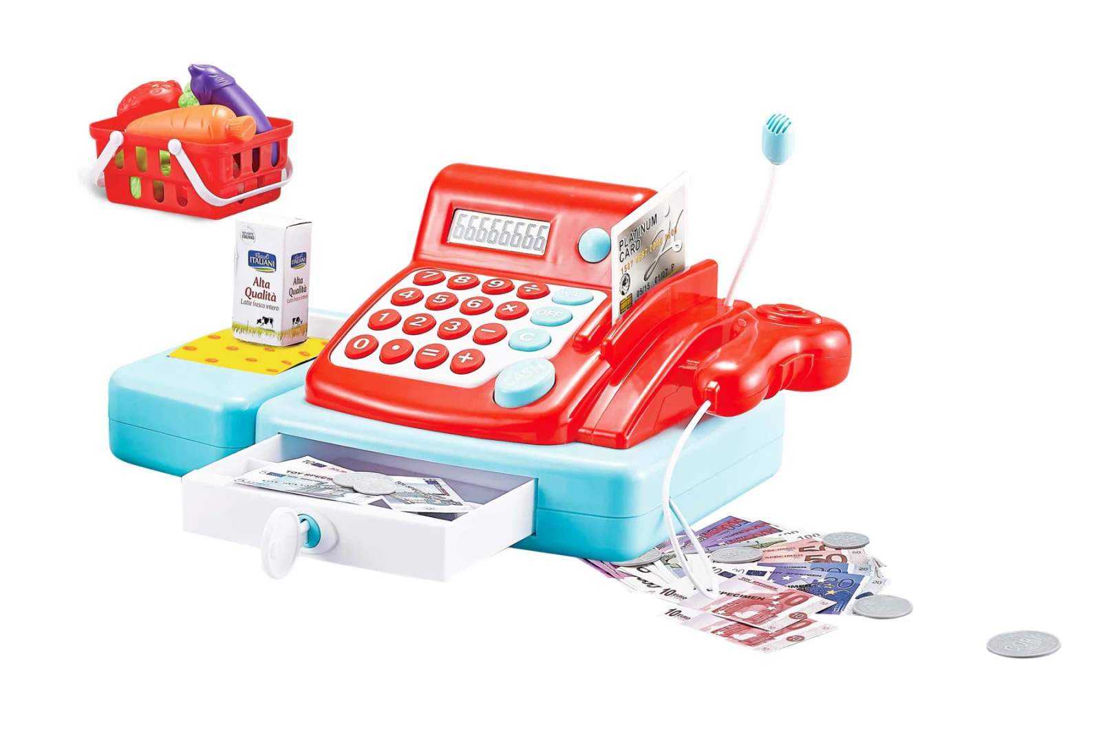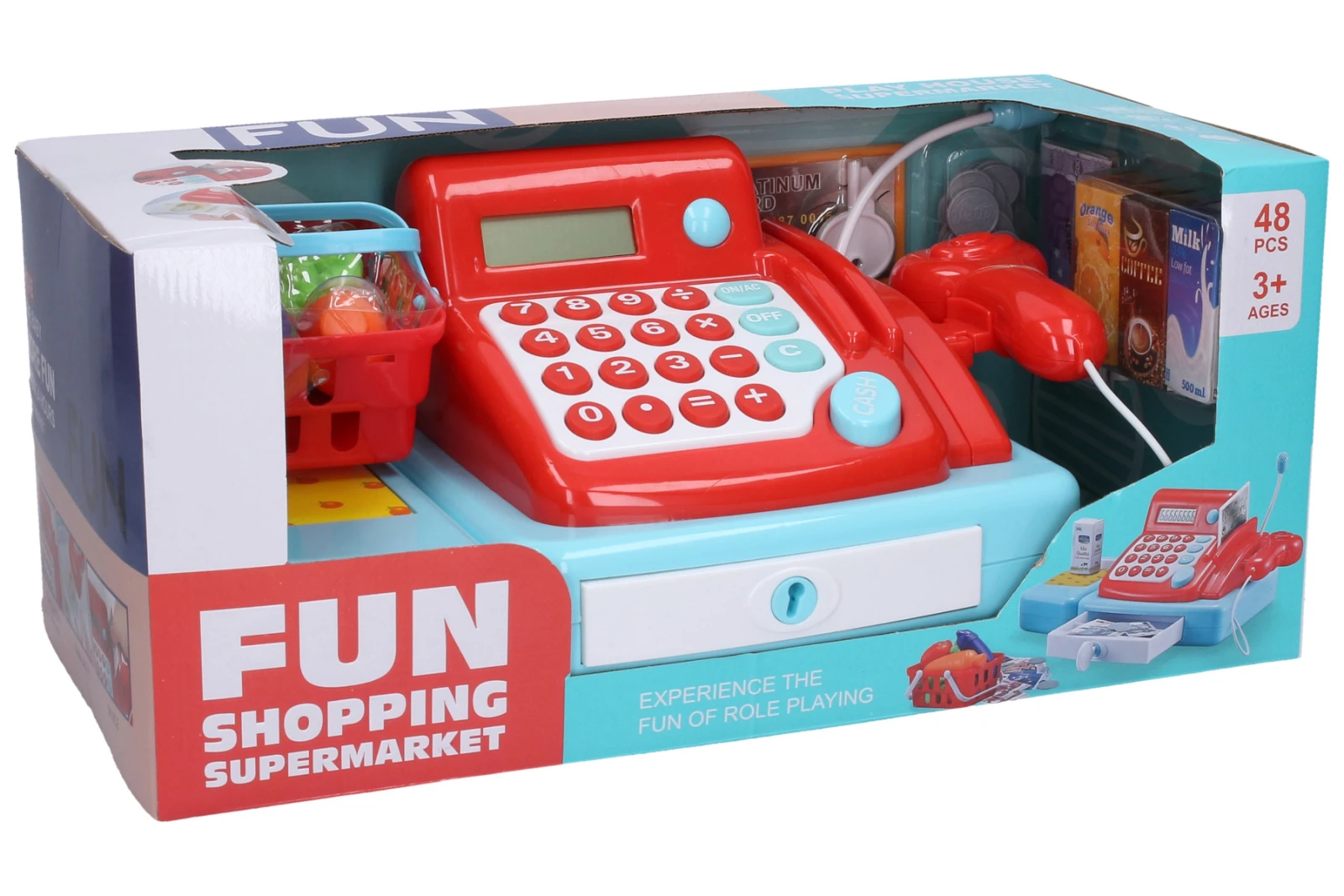 Pokladňa s doplnkami a efektmi o veľkosti 33 cm prináša deťom zábavnú a realistickú hru na obchod. Vďaka rôznym doplnkom a efektom si malí predavači môžu vyskúšať nakupovanie aj predávanie ako v skutočnom obchode.