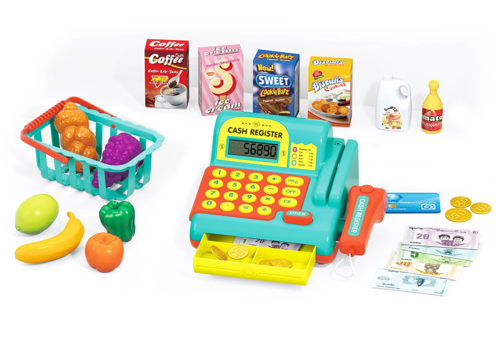 Vlastnosti: Realistické svetelné a zvukové efekty. Tlačidlá a čítačka pre simuláciu skutočnej pokladne.