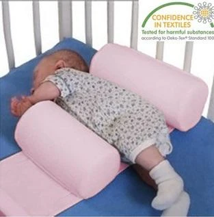 BEZPEČNOSŤ - Polohovacie valčeky zamedzujú dieťaťu pohyb do polohy na bruško, kde mu hrozí vdychovanie oxidu uhličitého aj zadusenie. Spolu s polohovacou podložkou zaisťujú valčeky bezpečnosť proti spätnému vdýchnutiu zvratkov! Napomáhajú znižovať riziko Syndrómu náhleho úmrtia.