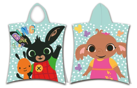 Froté pončo Králiček Bing je skvelou voľbou k vode, na pláž aj do kúpeľne a poteší všetkých malých fanúšikov obľúbeného zajačika a jeho kamarátov.