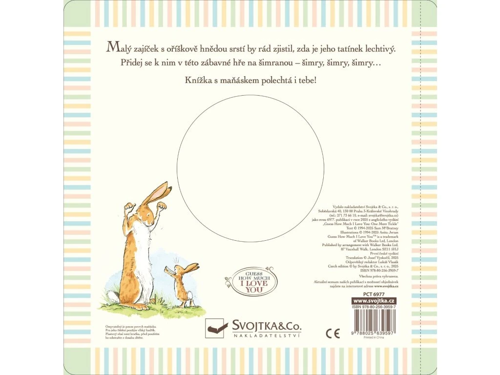 Otec zajac s orieškovo hnedou srsťou a jeho malý synček sa pred spaním hrajú na šteklinu - a ty sa môžeš pridať! Táto roztomilá knižka s maňáskom ti umožní stať sa súčasťou večerného maznania. Šimrej zajačika na ňufáku, pod bradou aj na packách a pomôž mu zistiť, kde ho to najviac šteklí. Príbeh plný lásky, nehy a smiechu, ideálny pre spoločné čítanie pred zaspaním. Maňuška zabudovaná priamo do knihy prináša zábavné, interaktívne čítanie, ktoré deti aj rodičia jednoducho milujú.