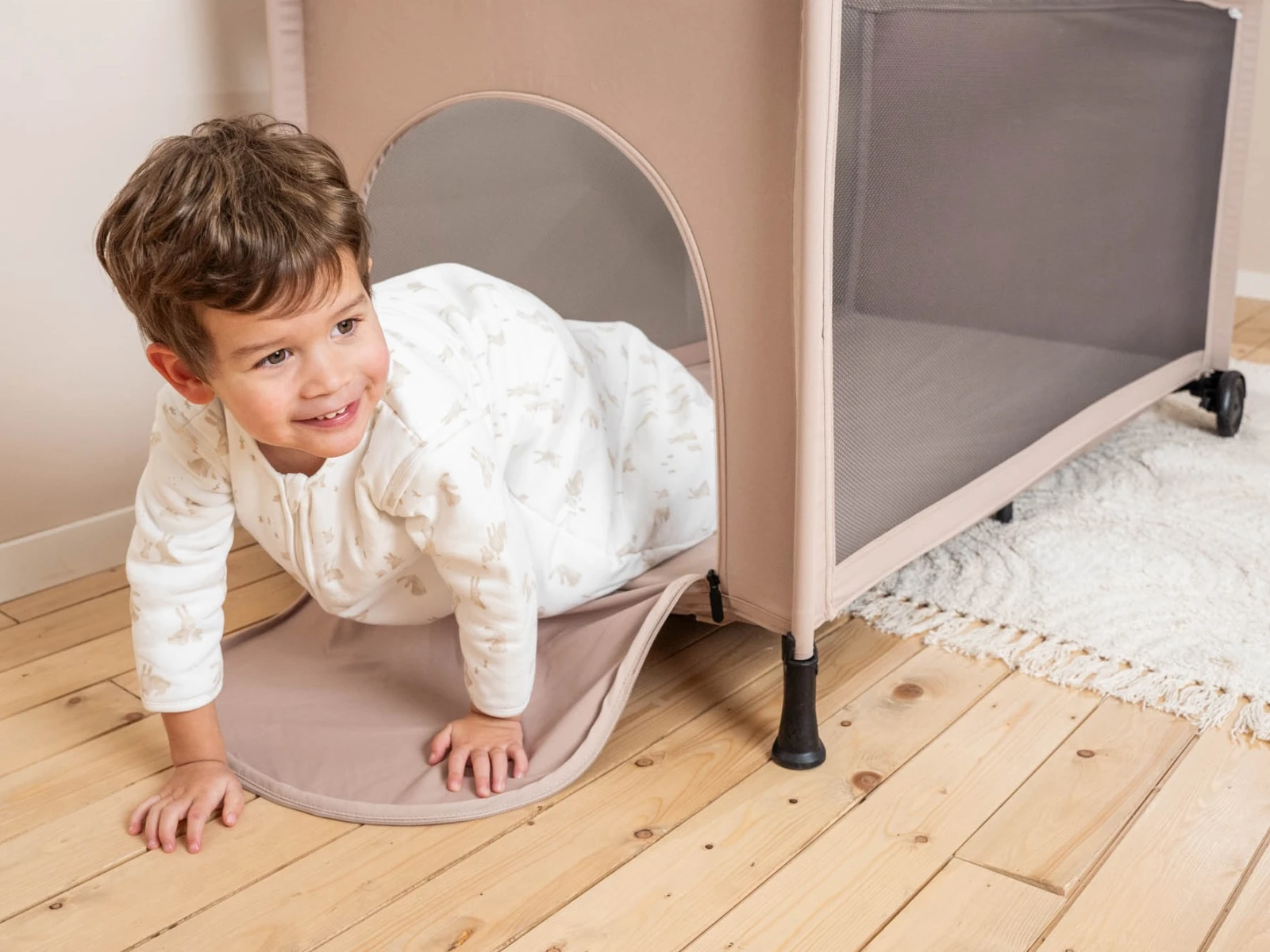 - Bočný otvor na zips – bezpečný spôsob, ako môže dieťa samo vyliezť, bez nutnosti preliezania bočnice