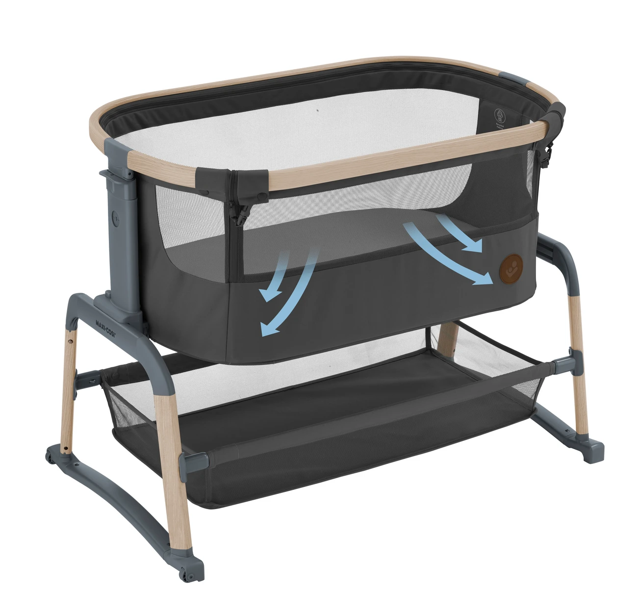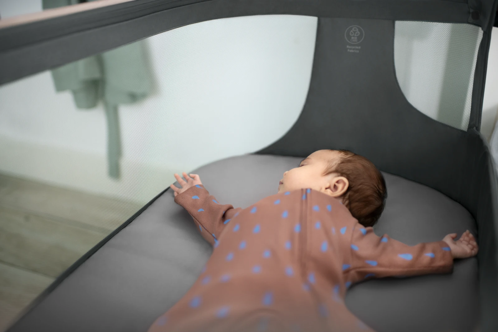 Postieľka je vybavená kvalitným penovým matracom. Bočné sieťované steny zaisťujú vetranie postieľky. Priestranný úložný kôš pod postieľkou môžete využiť na uloženie všetkého nevyhnutného na prebaľovanie a celkovú starostlivosť o bábätko. Neviditeľné kolieska uľahčujú presúvanie postieľky v interiéri. Postieľku je možné zložiť do praktickej cestovnej tašky a využiť ju aj na cestách. Textilné časti postieľky sú s ohľadom na udržateľnosť životného prostredia vyrobené zo 100% recyklovaných materiálov. Ľahko snímateľný poťah postieľky aj úložný kôš je možné prať v práčke.