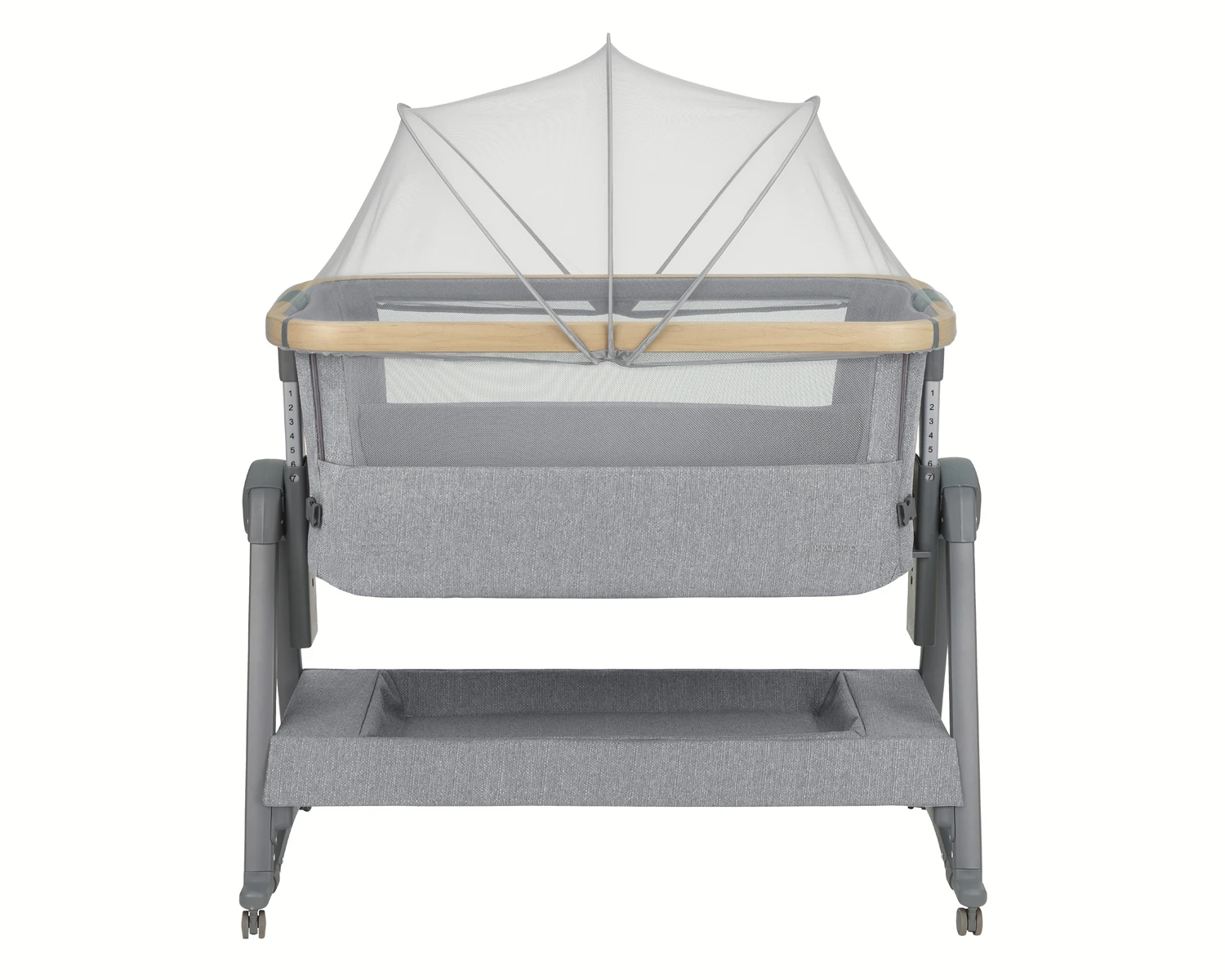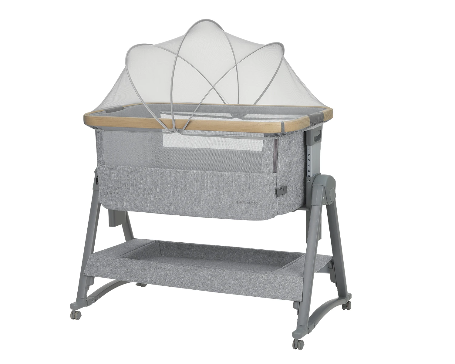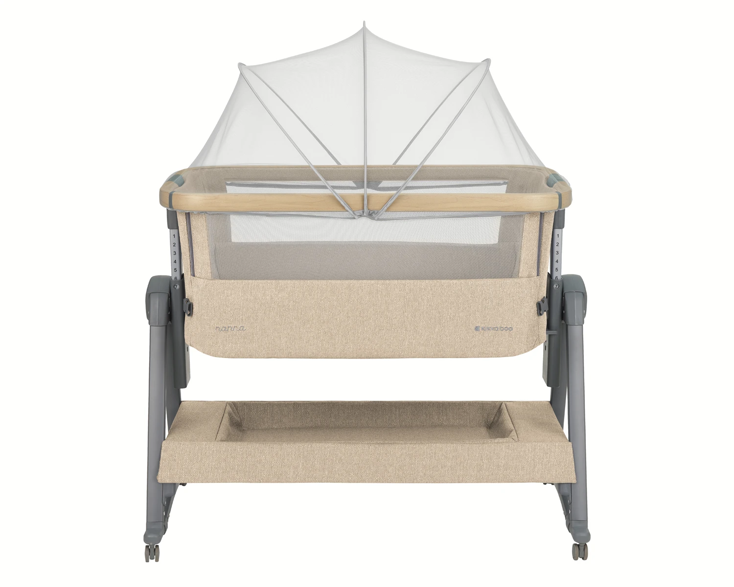 Postieľka KikkaBoo Nanna je praktická a štýlová prístavná postieľka k rodičovskej posteli, ktorá vám umožní mať bábätko bezpečne pri sebe a dopriať si tak pokojnejší spánok. Vďaka spúšťacej prednej strane máte dieťa vždy ľahko na dosah na dojčenie, upokojenie aj kontrolu bez nutnosti vstávať. Súčasťou je bezpečnostný popruh na pevné pripevnenie k rodičovskej posteli, takže postieľka drží stabilne na mieste. Moderná konštrukcia v kombinácii ľahkého hliníka s povrchovou úpravou v dekore dreva skvele zapadne do každej spálne a poteší aj pri cestovaní.