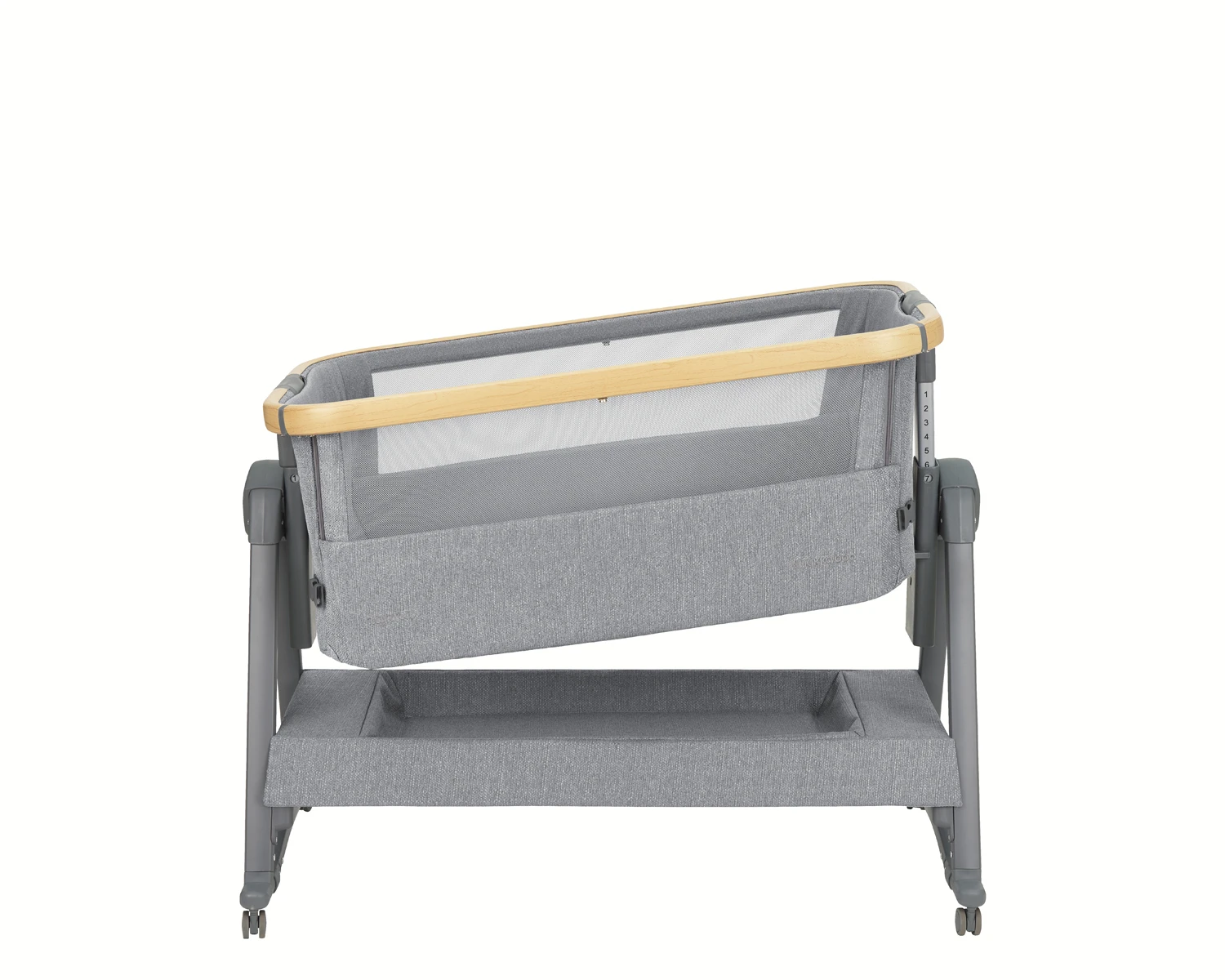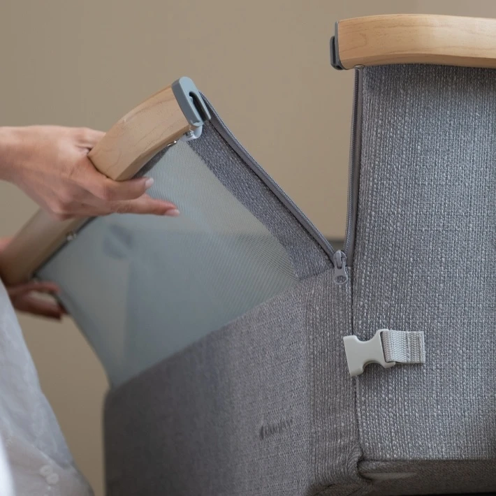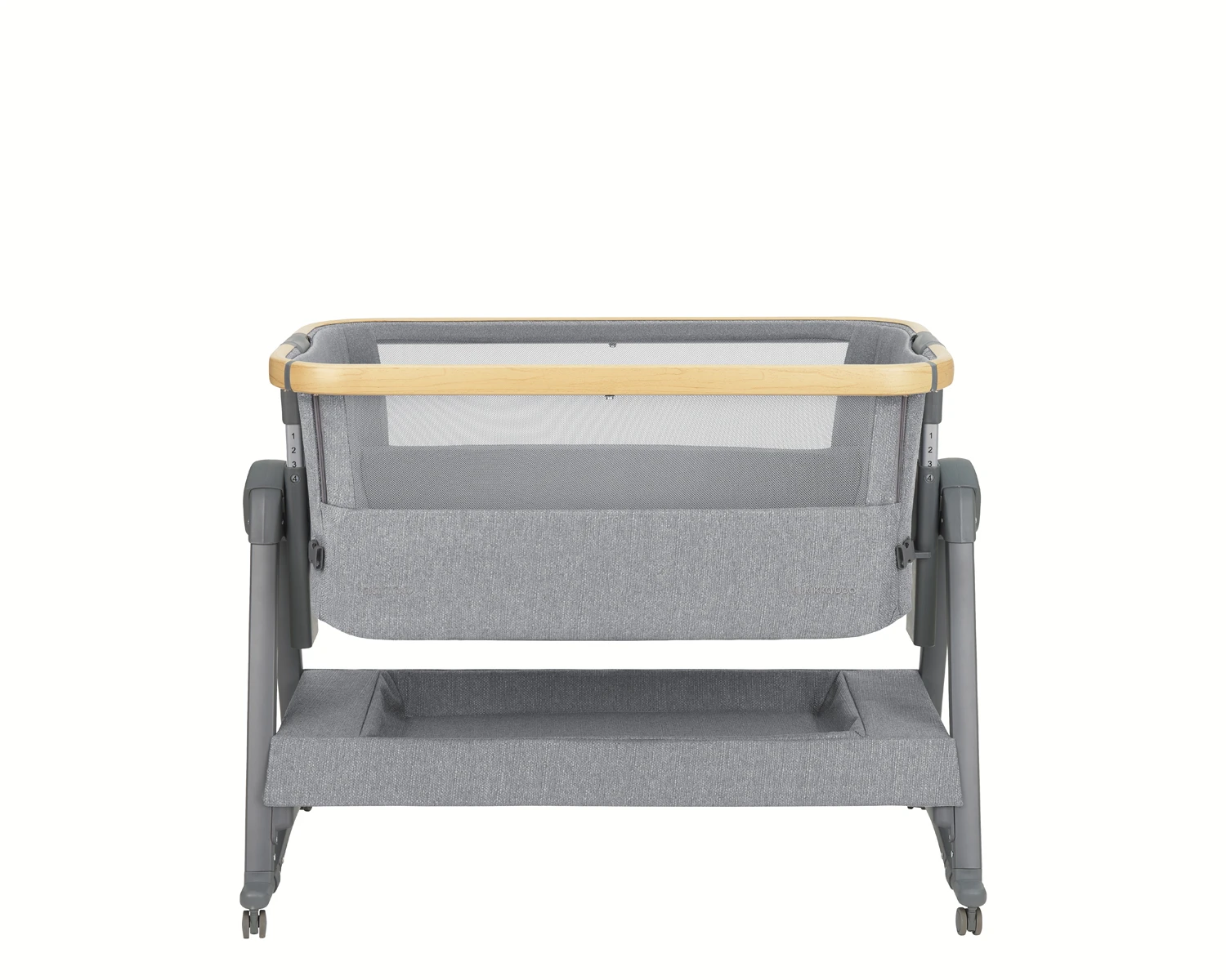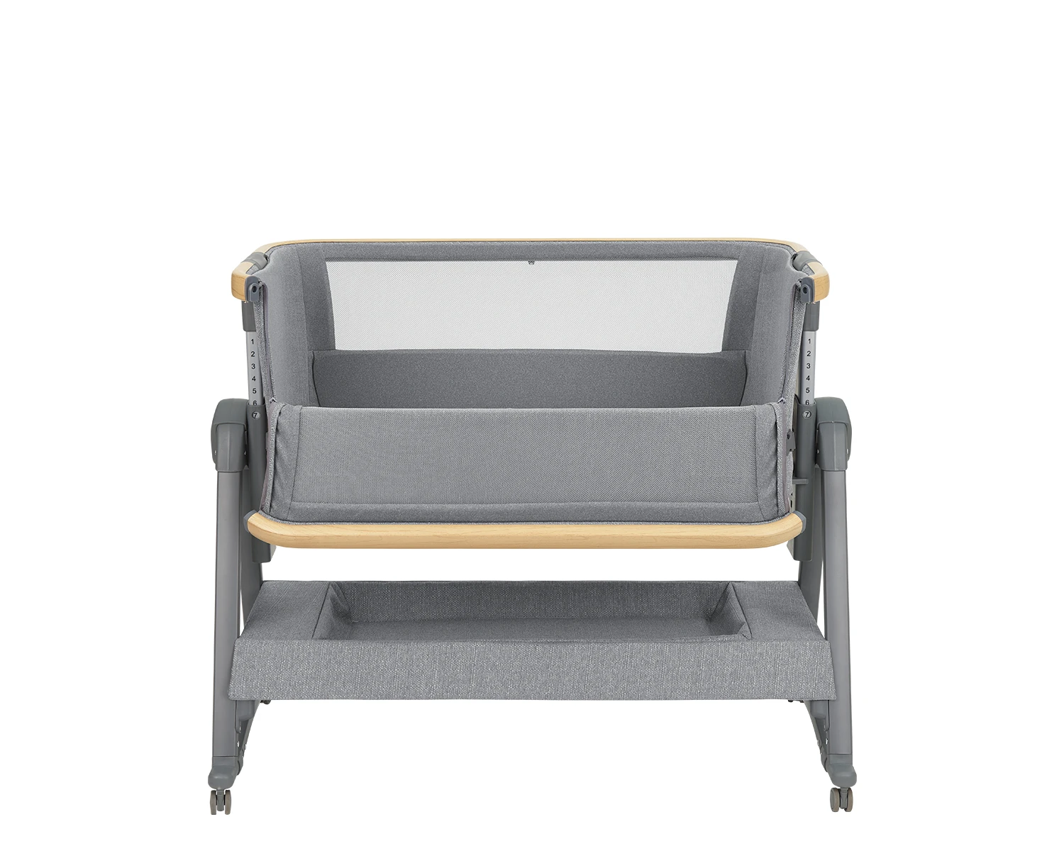 Postieľka KikkaBoo Nanna je praktická a štýlová prístavná postieľka k rodičovskej posteli, ktorá vám umožní mať bábätko bezpečne pri sebe a dopriať si tak pokojnejší spánok. Vďaka spúšťacej prednej strane máte dieťa vždy ľahko na dosah na dojčenie, upokojenie aj kontrolu bez nutnosti vstávať. Súčasťou je bezpečnostný popruh na pevné pripevnenie k rodičovskej posteli, takže postieľka drží stabilne na mieste. Moderná konštrukcia v kombinácii ľahkého hliníka s povrchovou úpravou v dekore dreva skvele zapadne do každej spálne a poteší aj pri cestovaní.