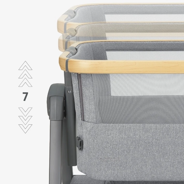 - 7 úrovní výškového nastavenia, aby postieľka pasovala k rôznym typom postelí