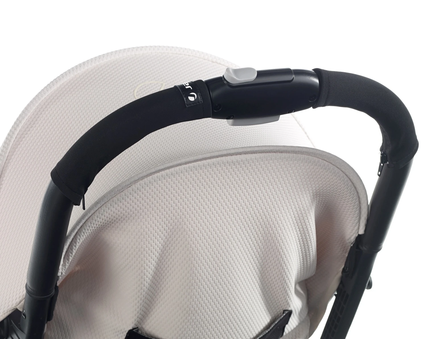 Poťah na rukoväť kočíka zložený z dvoch častí ochráni rukoväť pred opotrebením a zašpinením. Poťah je vyrobený z odolnej elastickej látky a sa ľahko inštaluje vďaka zipsu, ktorý bude skrytý na vnútornej strane rukoväte.