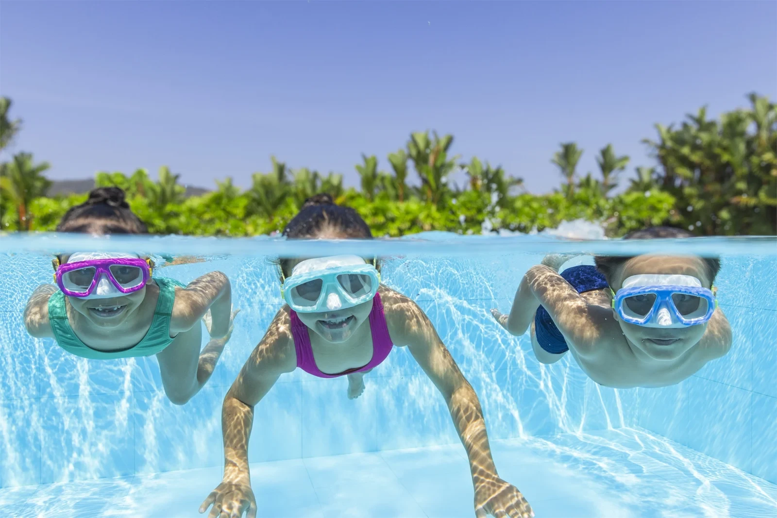 Polykarbonátové šošovky s UV ochranou chránia detské oči pred slnečným žiarením, zatiaľ čo dvojité tesnenie zaisťuje pohodlie a zabraňuje prenikaniu vody. Nastaviteľný pásik umožňuje ľahké prispôsobenie veľkosti.