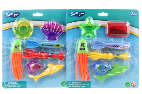 Objavte svet pod hladinou plný farieb a zábavy! Táto hravá sada na potápanie premení každé kúpanie na napínavú výpravu za pokladom. Stačí hodiť hračky do vody a vyraziť ich vyloviť z dna! V balení nájdete pestrú partiu vodných kamarátov – 1× chobotničku, 1× raketu, 1× žraloka, 1× rybku, 1× medúzu a 2× diamant. Každý kúsok má iný tvar aj farbu, čo zaručuje ešte väčšiu zábavu pri hľadaní pod vodou.