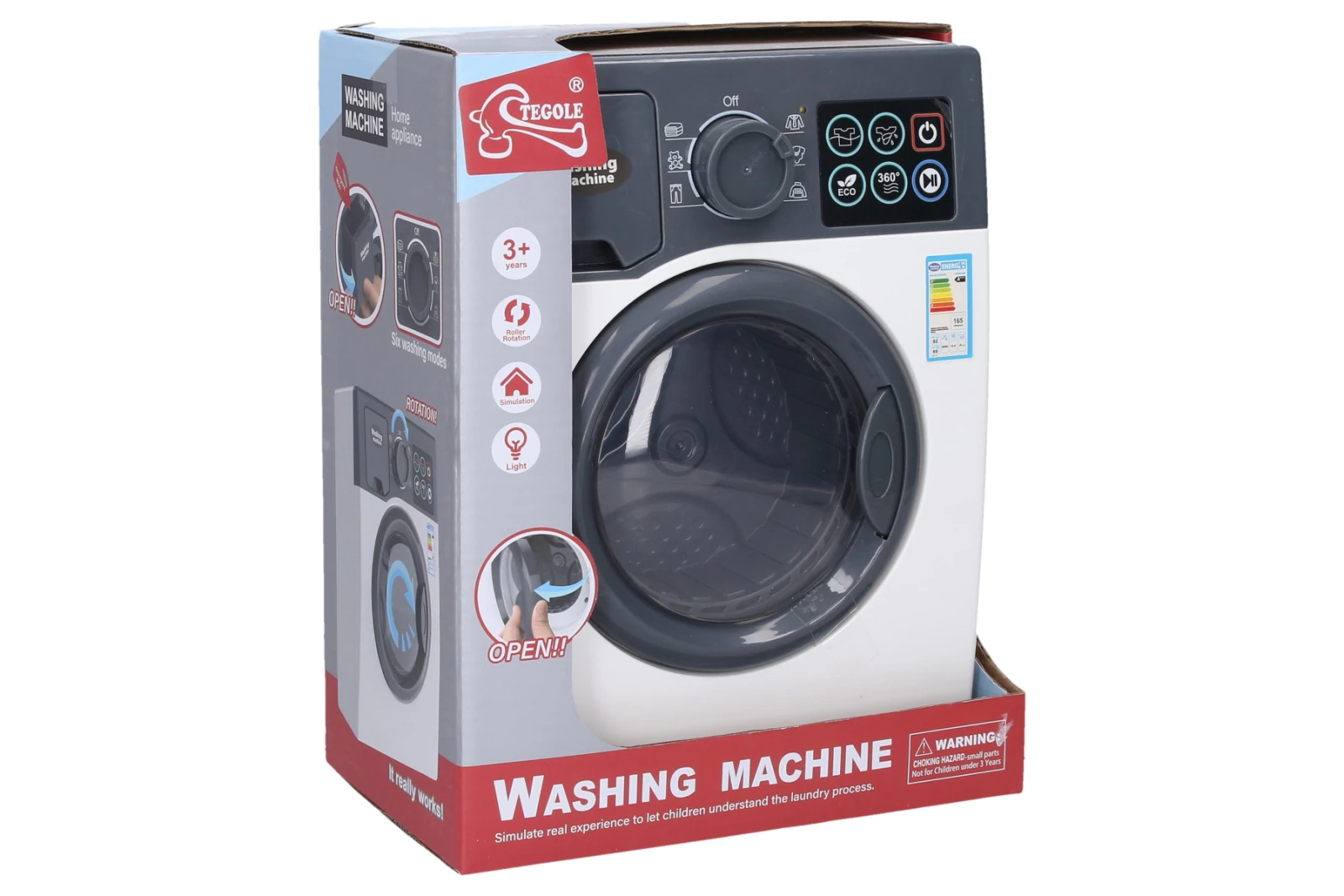 Detská práčka s efektmi o veľkosti 24 cm ponúka realistické zvuky a pohyby, ktoré deťom prinášajú zábavnú hru na domácnosť.