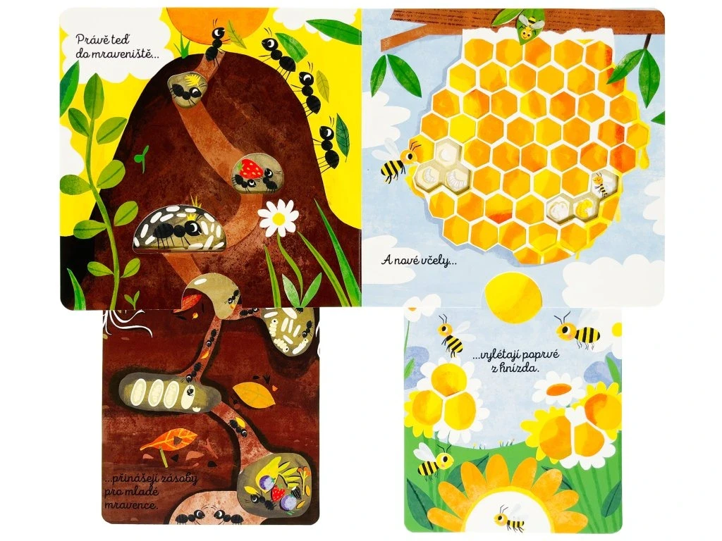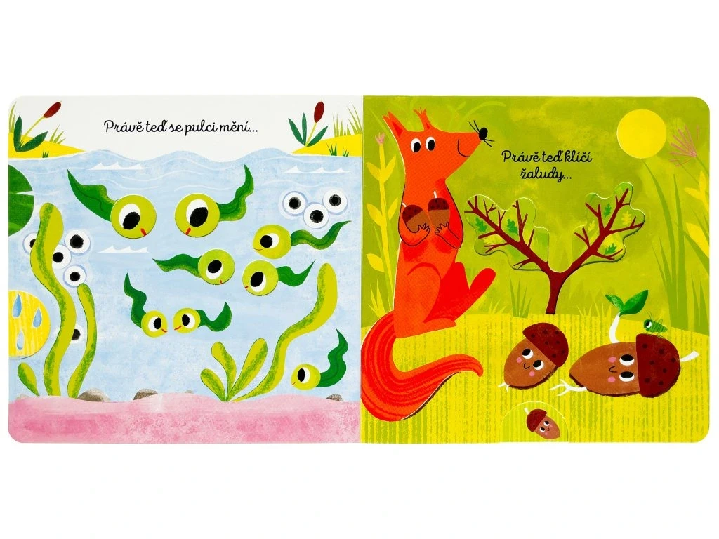 Z žubrienok žaby, z húseníc motýle… Objavujte premeny prírody v interaktívnom vysúvacom leporele pre najmenších čitateľov.