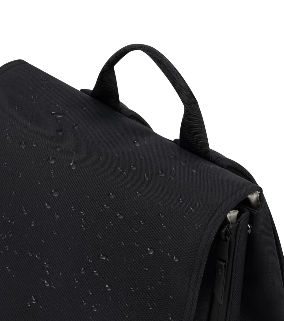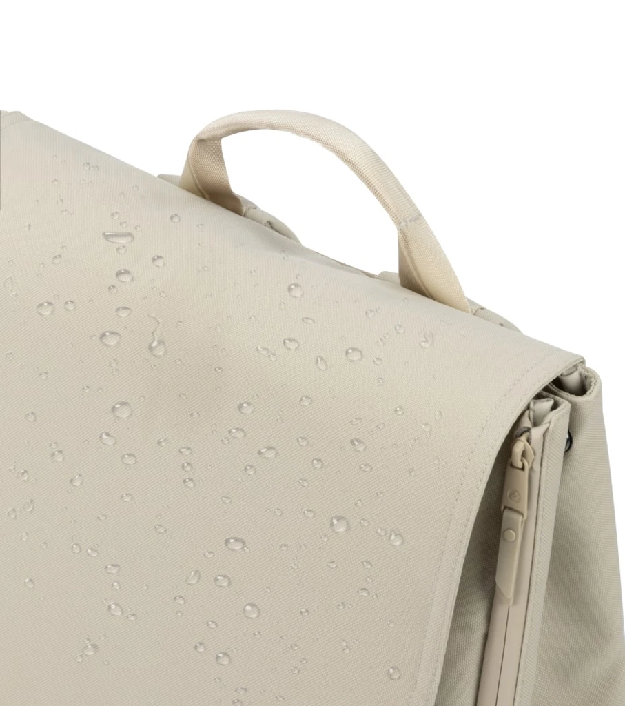 Batoh je vyrobený zo 100% recyklovaných látok Eco Care s vodeodolnou úpravou pre jednoduchú údržbu.