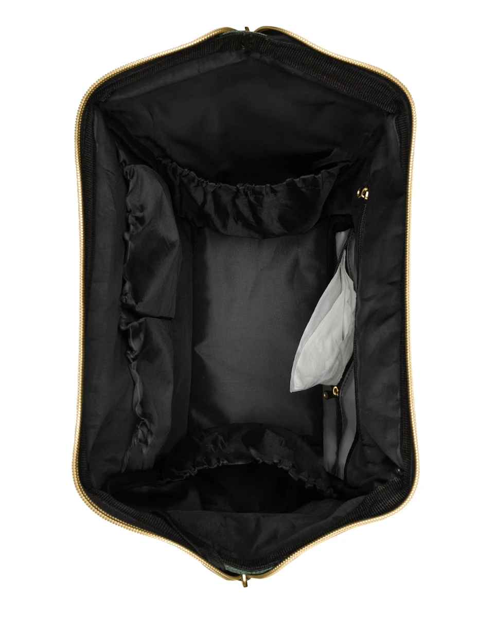 Vnútri batohu nájdete množstvo vreciek a priehradok aj vodeodolné vrecko na uloženie vlhkých predmetov. Široký spôsob otvárania batohu uľahčuje orientáciu v uloženom obsahu. Na vonkajšej strane nájdete vrecká s uzatváraním na zips aj vrecko na uloženie fľaše. Termoizolačné vrecká na fľaše pomáhajú udržať nápoje či mlieko dlhšiu dobu v optimálnej teplote. Súčasťou plecniaka je aj prebaľovacia podložka.