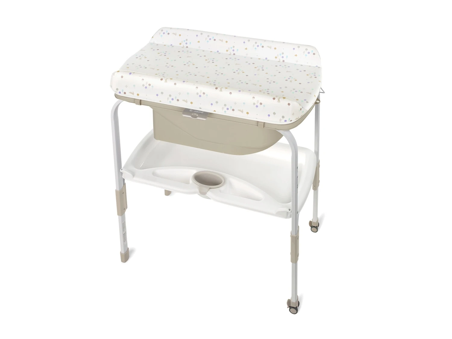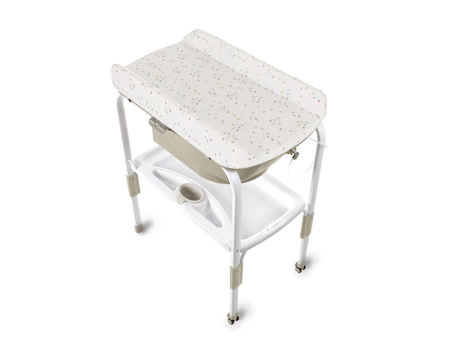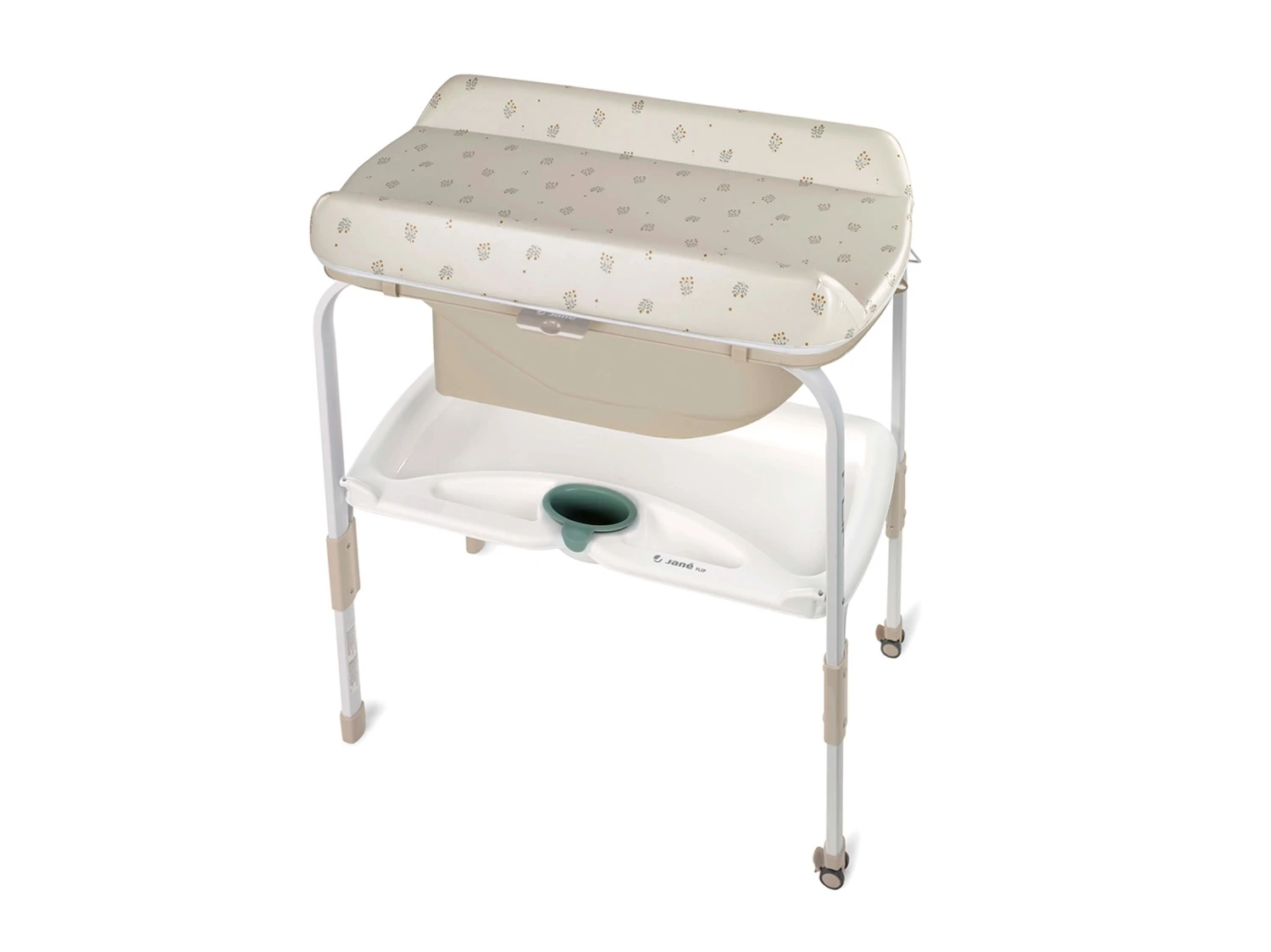 Prebaľovací pult s vaničkou Jané Flip je praktické riešenie 2v1, ktoré vám umožní bábätko kúpať aj prebaľovať na jednom mieste - bez ohýbania a bez behania medzi vaničkou a prebaľovacím pultom. Všetko potrebné máte po ruke v priestrannej spodnej polici s priehradkami, takže kúpanie aj prebaľovanie prebieha pokojnejšie a pohodlnejšie. Po použití sa celý pult jednoducho zloží do kompaktného tvaru, aby nezaberal miesto.