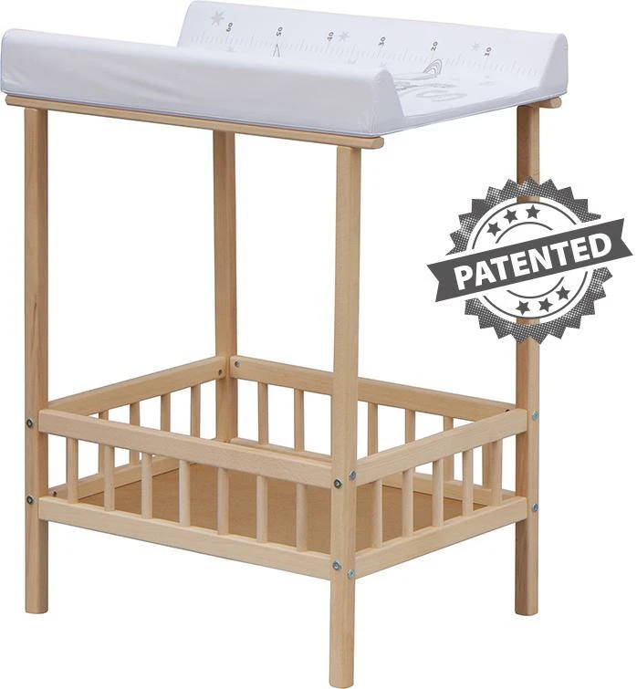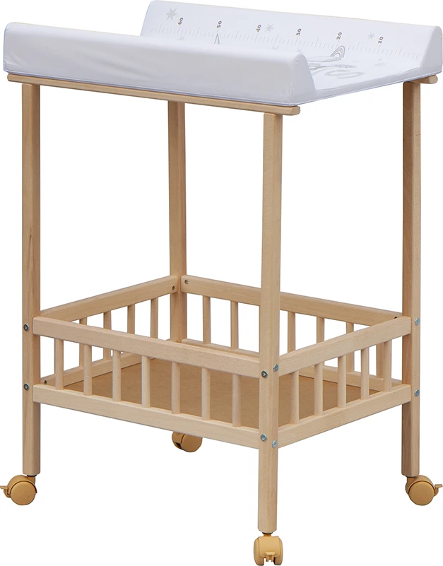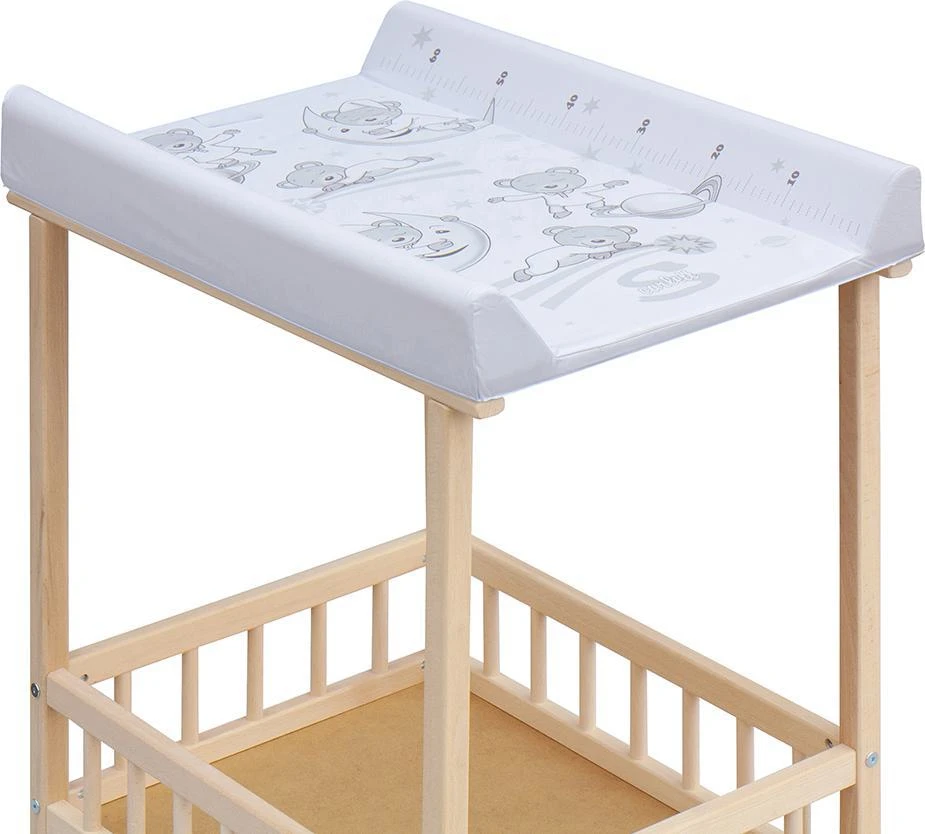 Praktický prebaľovací pult s dvoma policami z HDF dosky. Vrchný prebaľovací pult z polyuretánu potiahnutý umývateľným PVC, vystužený MDF doskou.