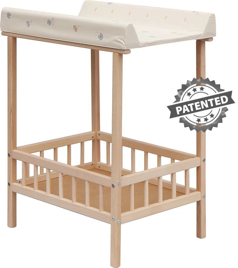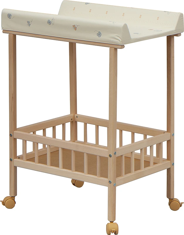 Praktický prebaľovací pult s dvoma policami z HDF dosky. Vrchný prebaľovací pult z polyuretánu potiahnutý umývateľným PVC, vystužený MDF doskou.