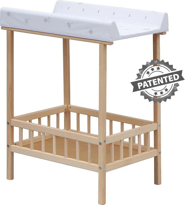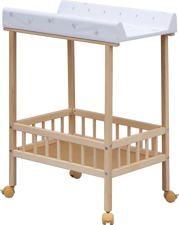 Praktický prebaľovací pult s dvoma policami z HDF dosky. Vrchný prebaľovací pult z polyuretánu potiahnutý umývateľným PVC, vystužený MDF doskou.