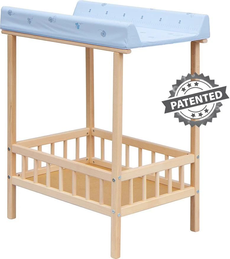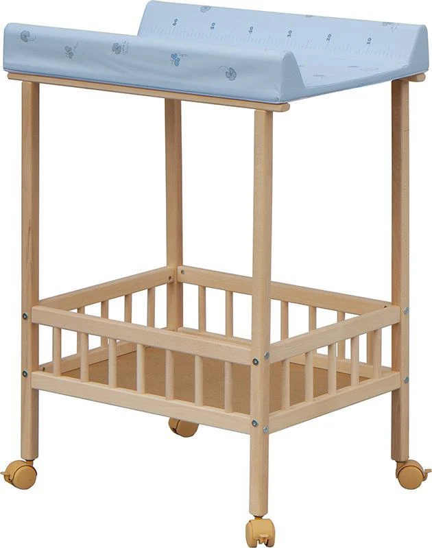 Praktický prebaľovací pult s dvoma policami z HDF dosky. Vrchný prebaľovací pult z polyuretánu potiahnutý umývateľným PVC, vystužený MDF doskou.