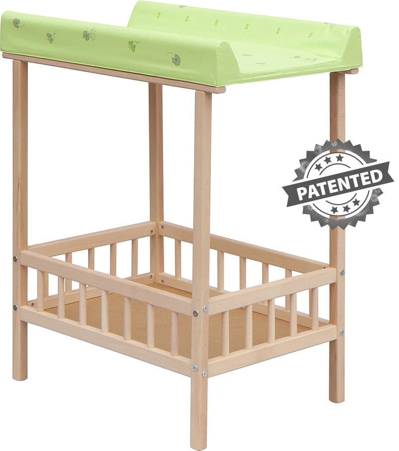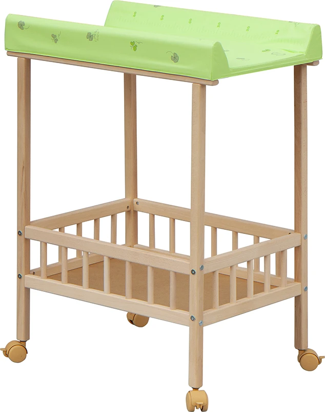 Praktický prebaľovací pult s dvoma policami z HDF dosky. Vrchný prebaľovací pult z polyuretánu potiahnutý umývateľným PVC, vystužený MDF doskou.