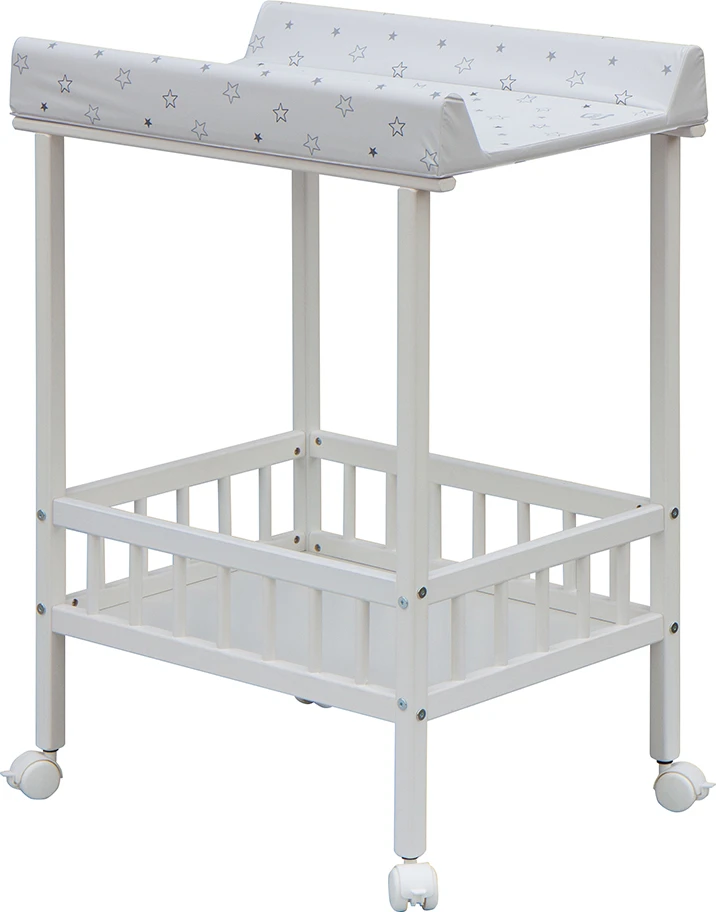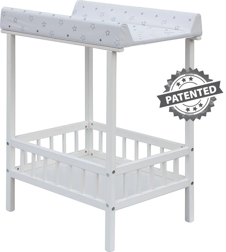 Praktický prebaľovací pult s dvoma policami z HDF dosky. Vrchný prebaľovací pult z polyuretánu potiahnutý umývateľným PVC, vystužený MDF doskou.
