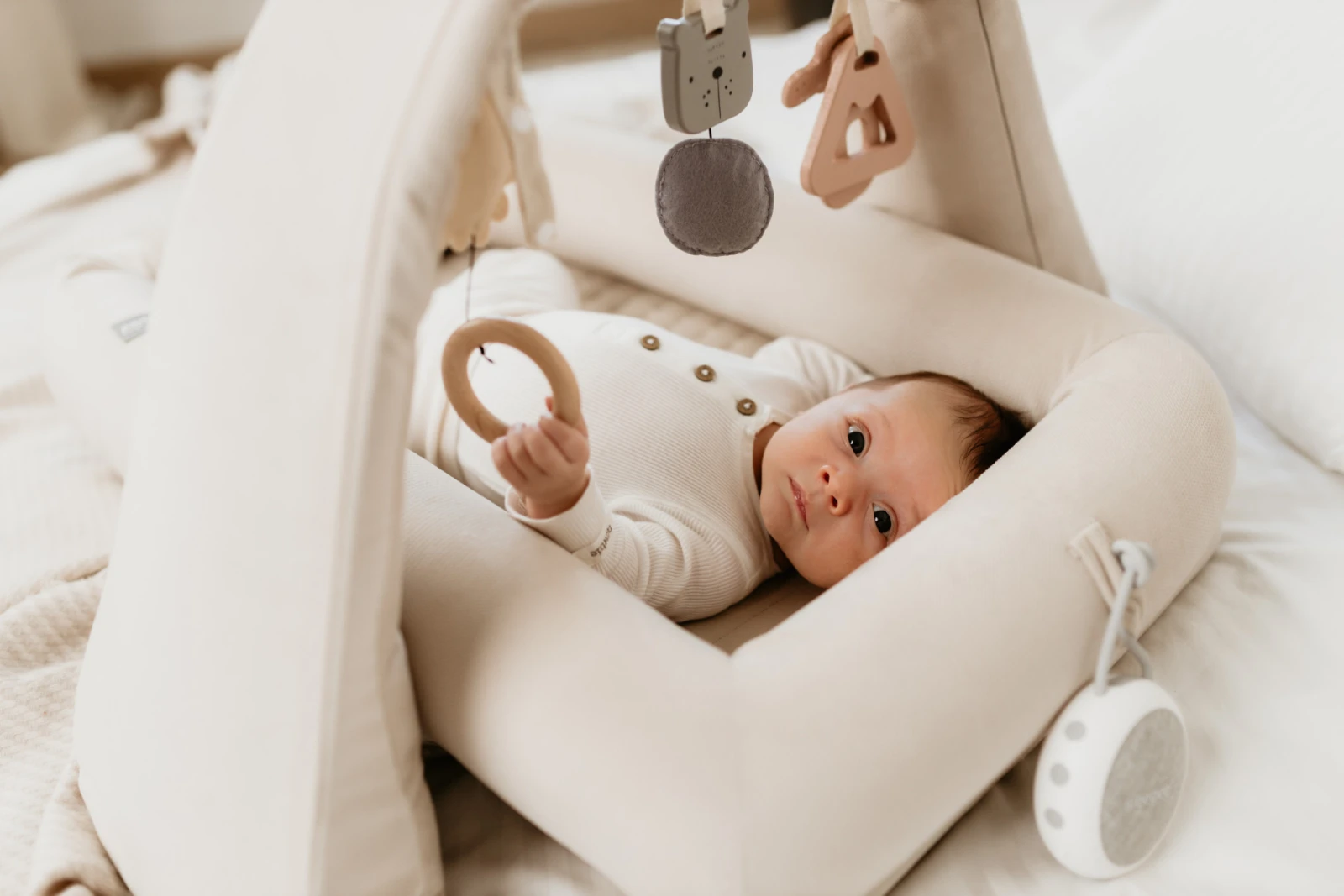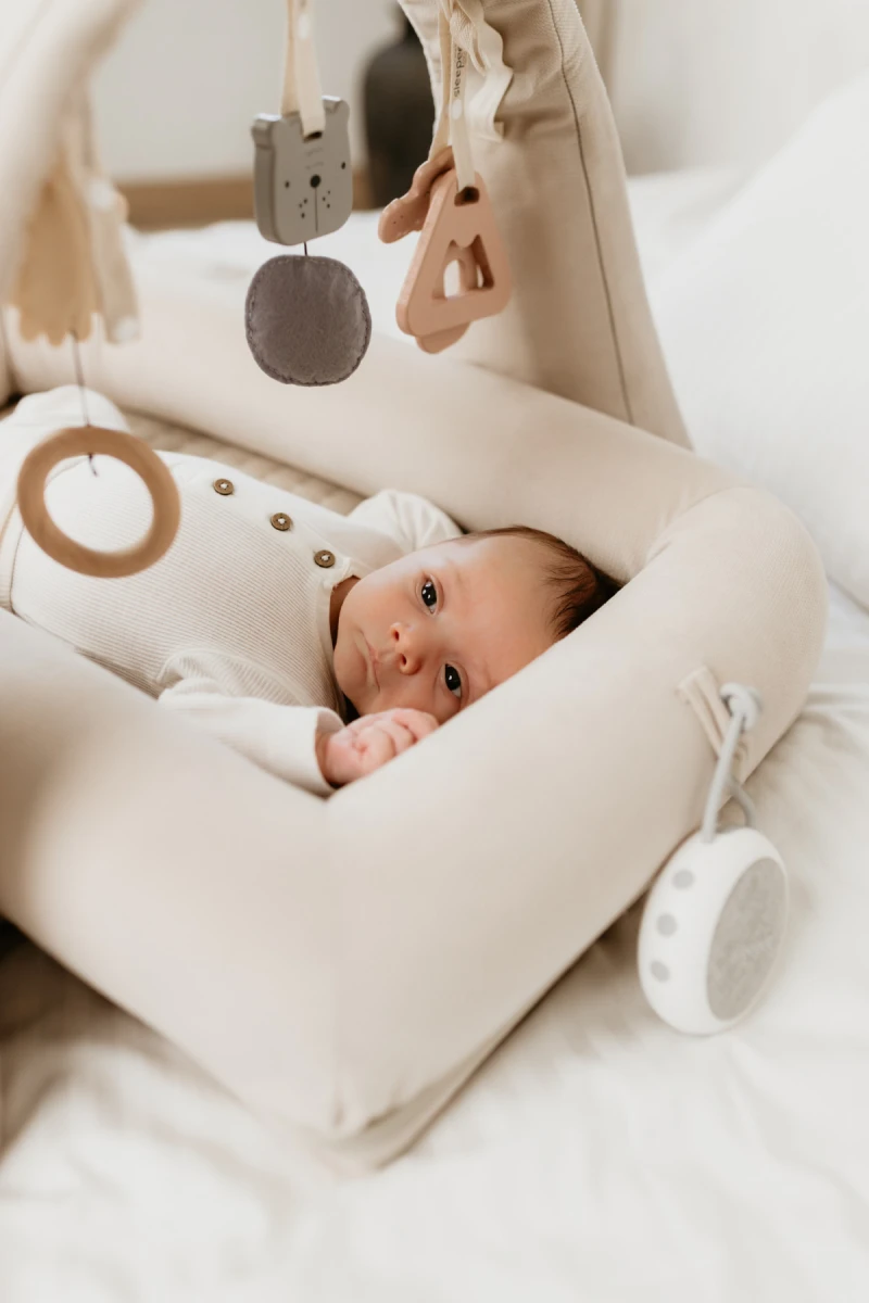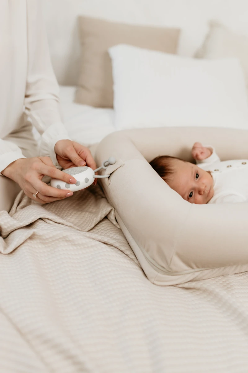 - Zvukový modul má silikónové úchyty, vďaka ktorému ho ľahko pripevníte k hniezdočku Sleepee, ale aj postieľke, kočíku, kolíske, autosedačke alebo kdekoľvek bude práve potrebné.