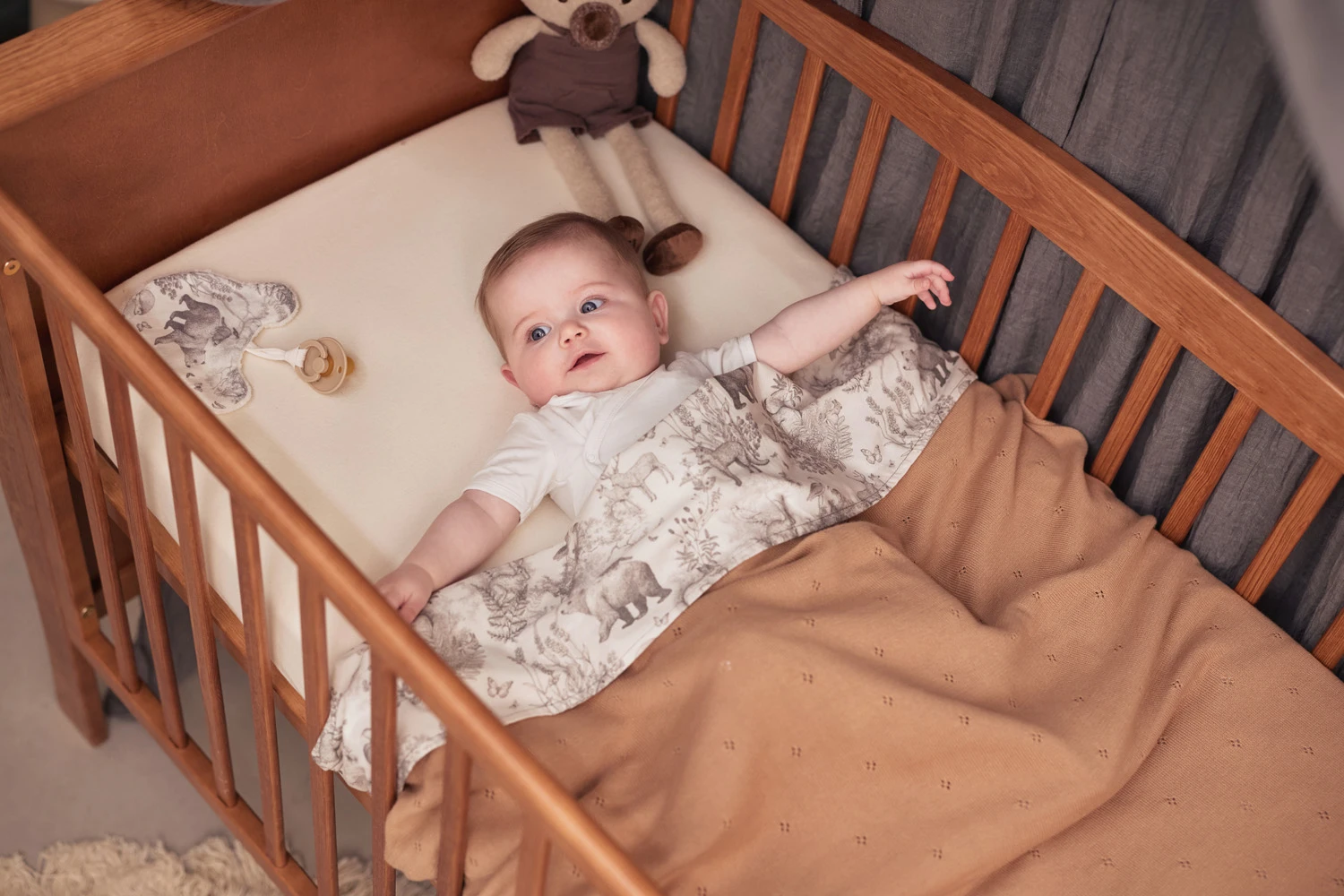 Napínacie prestieradlo Jollein Sea Nougat je vyrobené z kvalitnej a jemnej bavlny, ktorá zaisťuje pohodlie a pokojný spánok dieťaťa, a vďaka pružným okrajom perfektne drží na matrac detskej postieľky.
