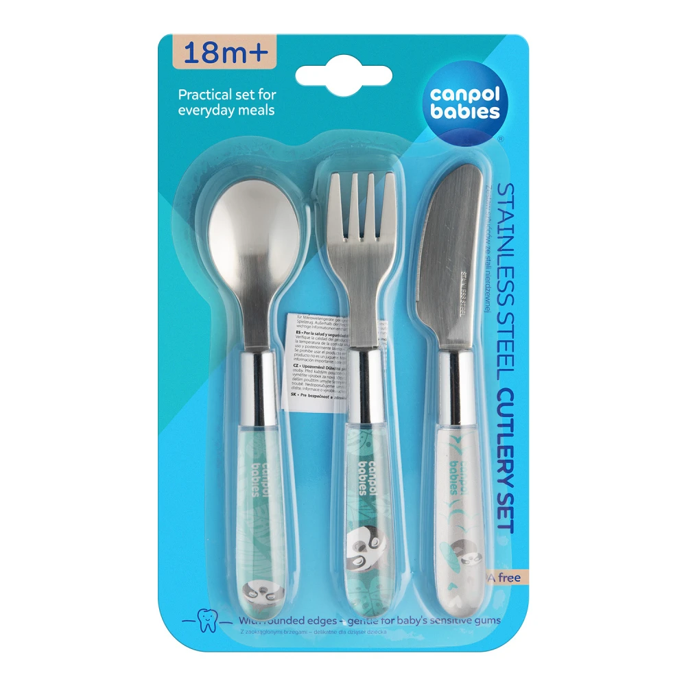 Špeciálne tvarovaný detský kovový príbor (nôž, vidlička, lyžička) je určený deťom, ktoré sa učia samy jesť. Zaoblené tvary nedráždia cilivé detské ďasná a sú pre dieťa bezpečné. Príbor je vyrobený z kvalitnej nehrdzavejúcej ocele. Odporúčame pre deti staršie ako 18 mesiacov.