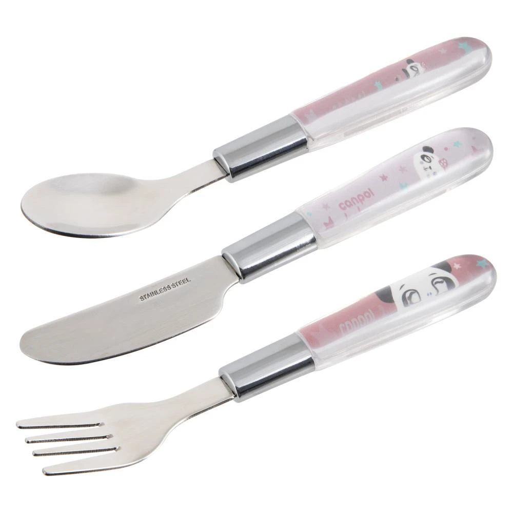 Príbor kovový Exotic Animals 3 ks ružový Canpol babies