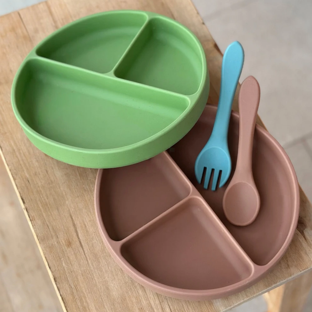 Súprava pozostávajúca z vidličky a lyžičky je celá vyrobená z potravinárskeho silikónu bez obsahu BPA. Vďaka tomu môže vaše dieťa jesť príborom teplé aj studené jedlá. Vďaka pružnému silikónu je príbor ideálny pre citlivé ďasná malého dieťaťa. Príbor je vhodný pre deti od 6 mesiacov, ktoré sa zoznamujú s pestrou stravou, a pre tie, ktoré sa už úspešne učia jesť samy. Zaoblené tvary a malé rozmery uľahčujú dieťatku ich uchopenie a tým aj papanie.