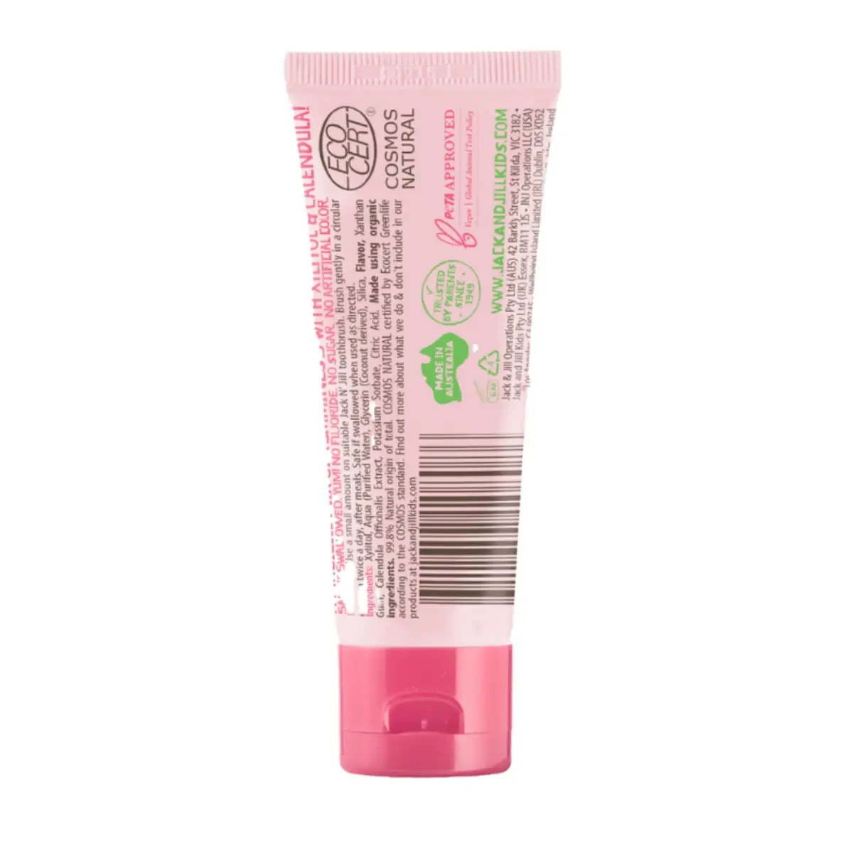 Naša jemná gélová receptúra neobsahuje fluorid a je vhodná pre deti už od 6 mesiacov (kedy sa bábätkám obvykle začínajú prerezávať prvé zúbky). Vieme, že malé deti ešte nevedia pľuvať – zubná pasta Jack N' Jill je preto bezpečná aj pri prehltnutí.