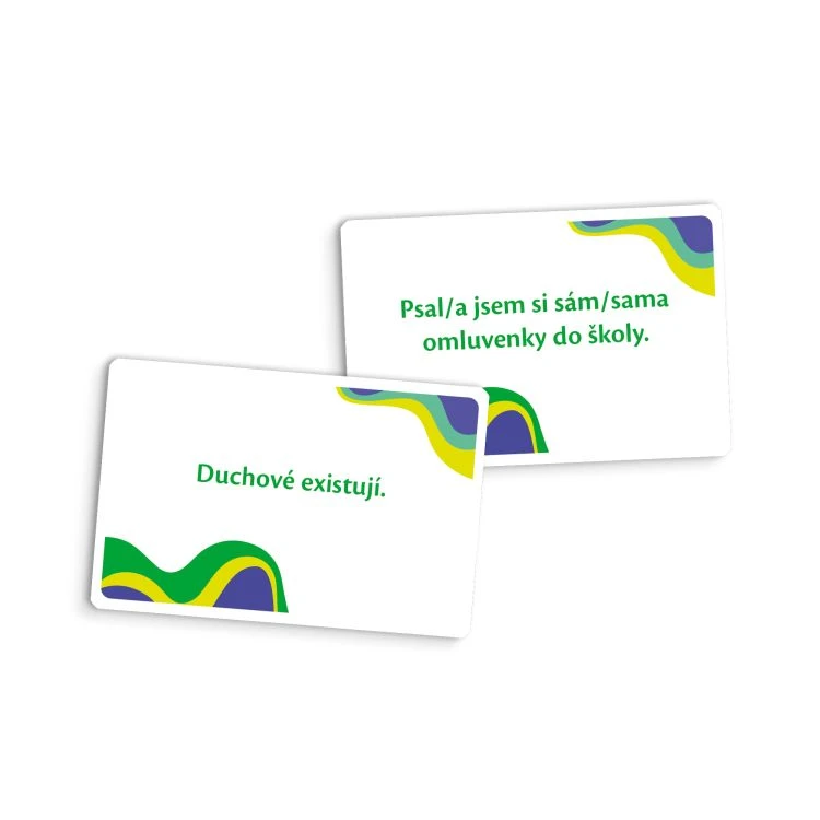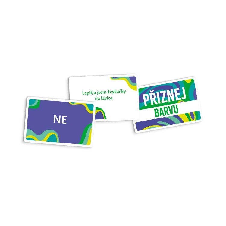 Priznaj farbu sú zábavné konverzačné karty - verzia Kamaráti je oproti ostatným dvom verziám vhodná aj pre mladších hráčov od 12 rokov.