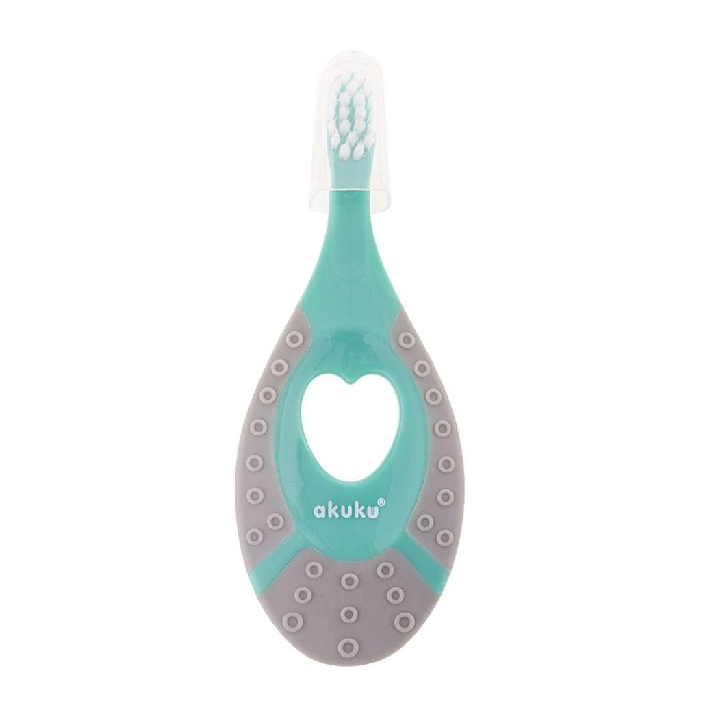 Prvá zubná kefka so silikónovým hryzátkom Akuku