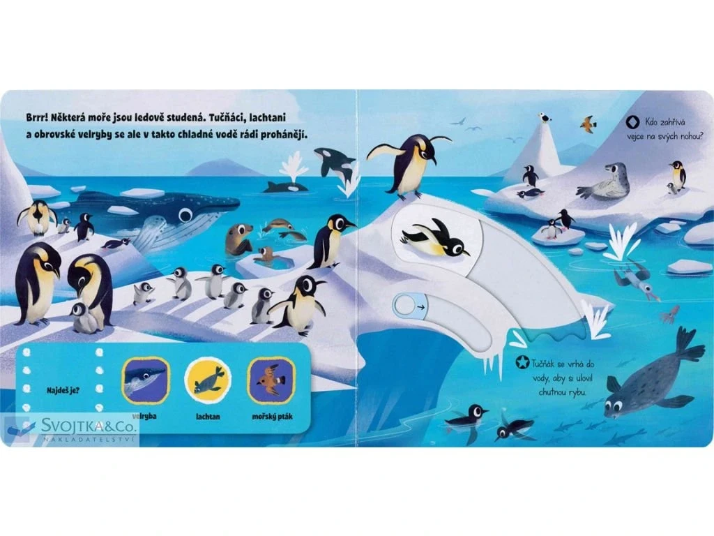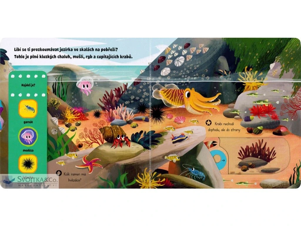 Ponor sa do morských hlbín, medzi koralové útesy a pod hladinu ľadových oceánov! Objavíš úžasne farebné rybky, dravé žralokmi av hlbinách ukryté raja a chobotnice. Otvor knižku a zoznam sa s nimi! Nájdi morského koníka, ktorý sa ukrýva medzi koralmi, a spolu s tučniakmi sa skĺzni po ľade. Kniha z radu Prvé objavy s obrázkami má v každej scéne pohyblivé prvky, vďaka ktorým sa deti zoznámia s úžasným svetom prírody.