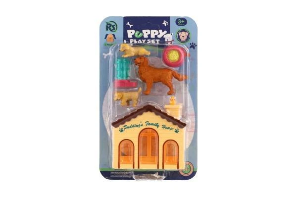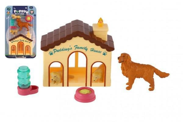 Psíkové/Pes 3 ks s domčekom/búdou s doplnkami