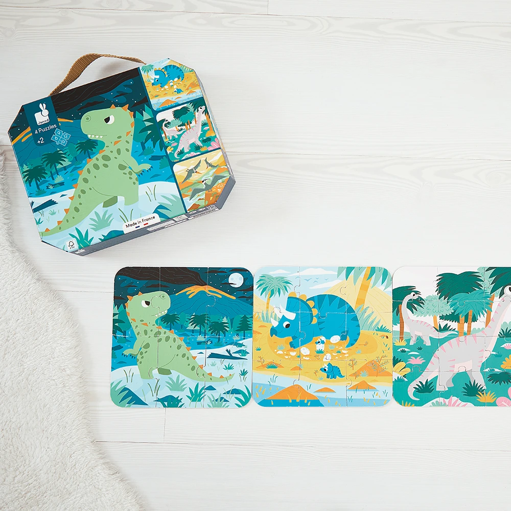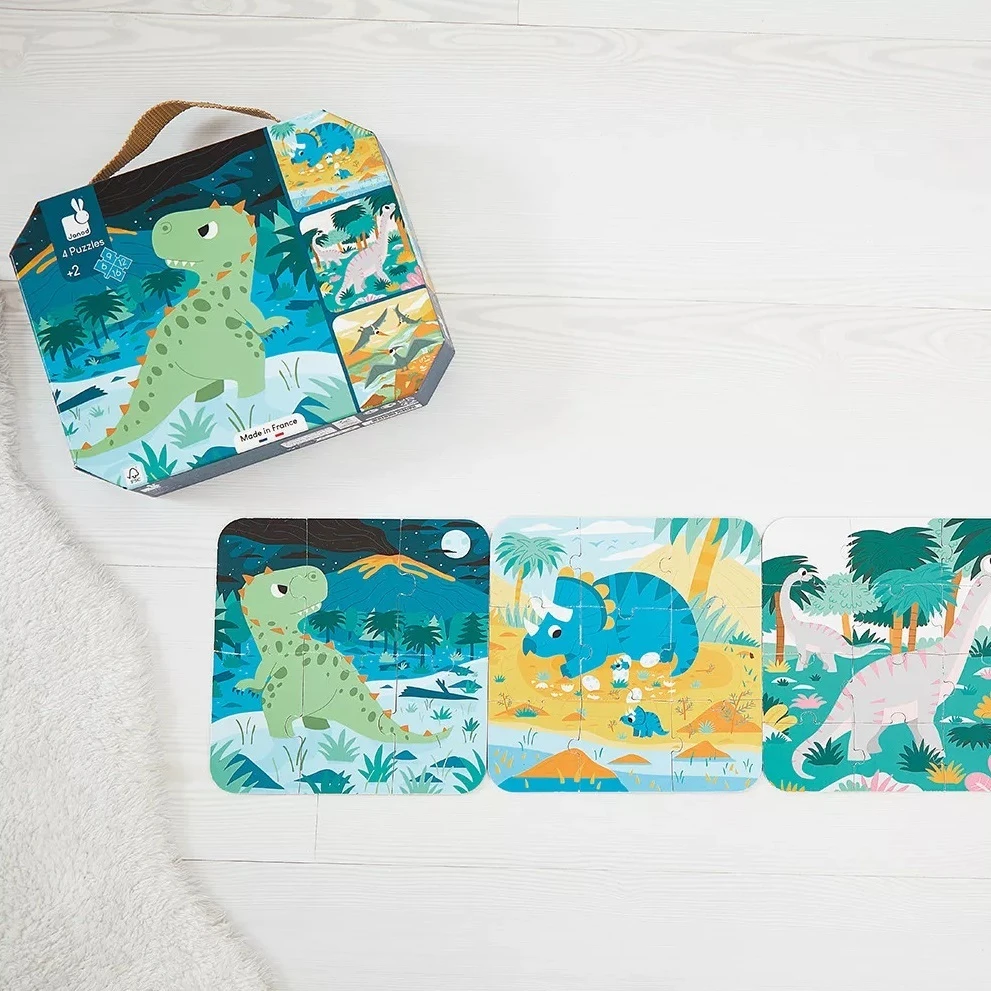 Puzzle v kufríku 4v1 Dinosaury Janod