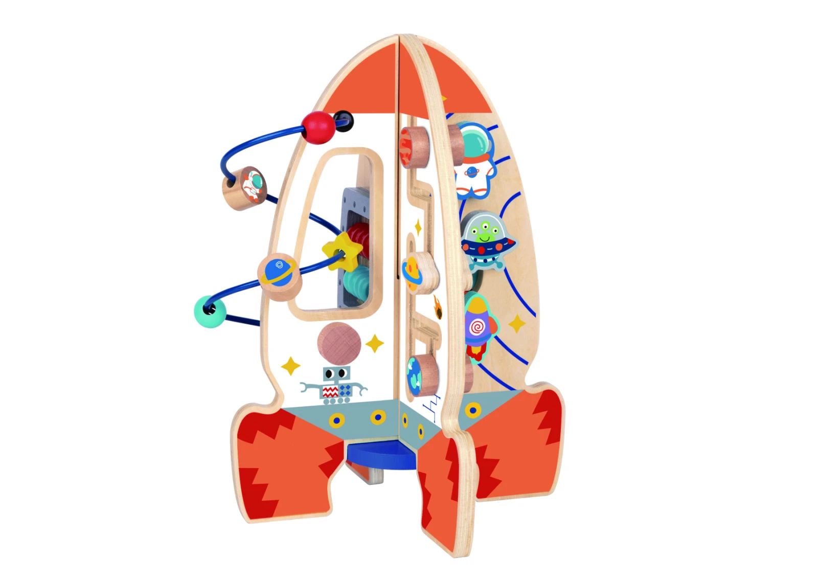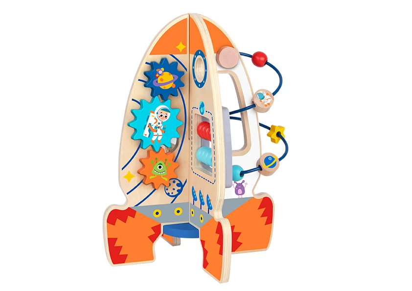 Vesmírny motív - jasné farby a tvar rakety pomáhajú udržať pozornosť dieťaťa a vstúpiť do sveta fantázie. Vyrobené z kvalitného dreva, s netoxickými farbami a bez ostrých hrán - bezpečné pre malé ruky.