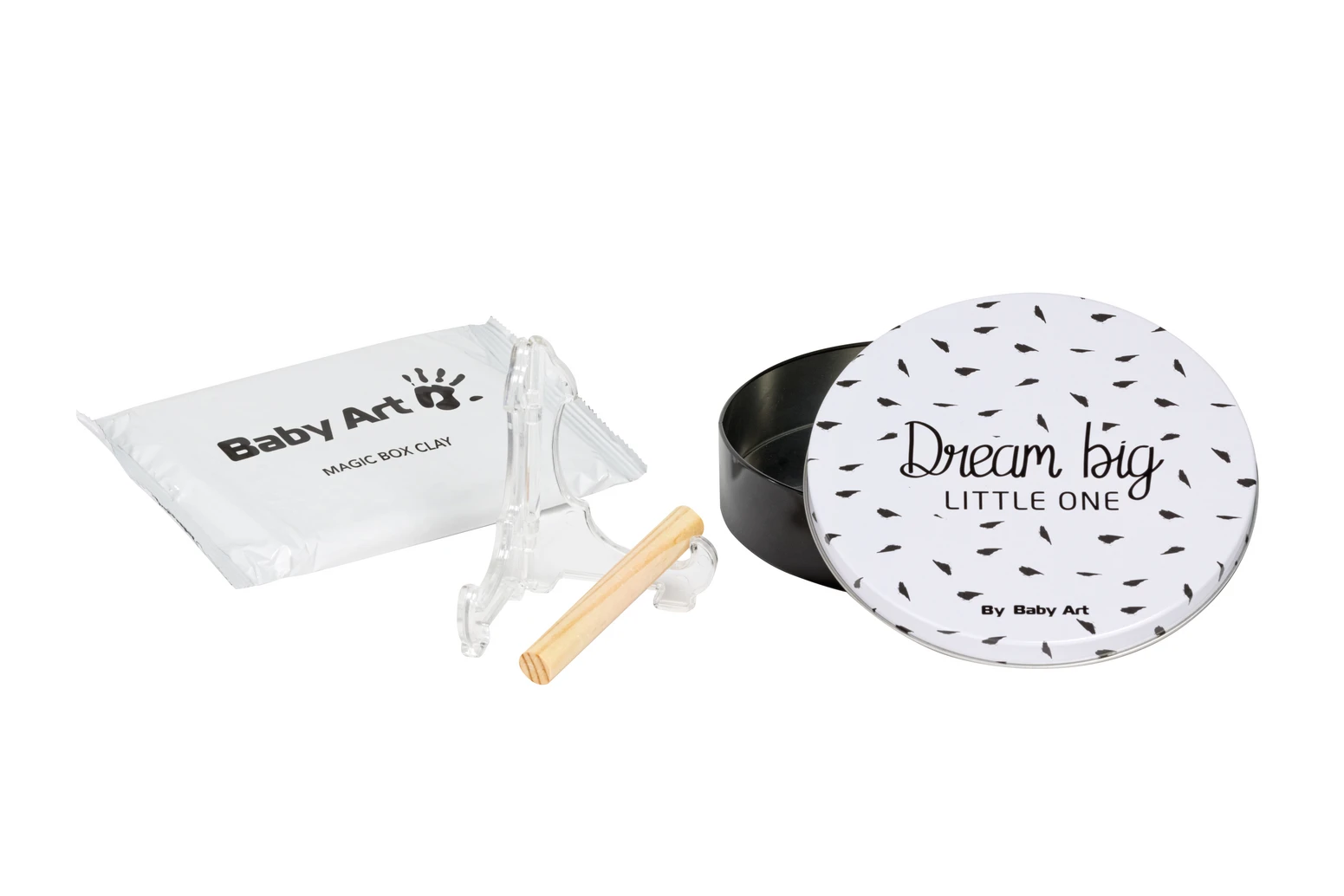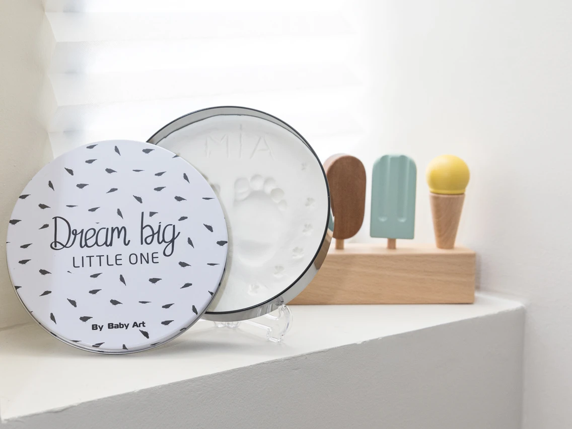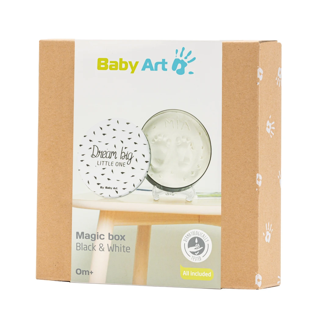 Rámček s vekom a stojanom Baby Art Magic Box ponúka priestor na odtlačok ručičky alebo nožičky Vášho bábätka. Vyrobte si krásnu dekoráciu, ktorá vám zároveň pomôže uchovať spomienky na krásne obdobie po narodení vášho dieťaťa.