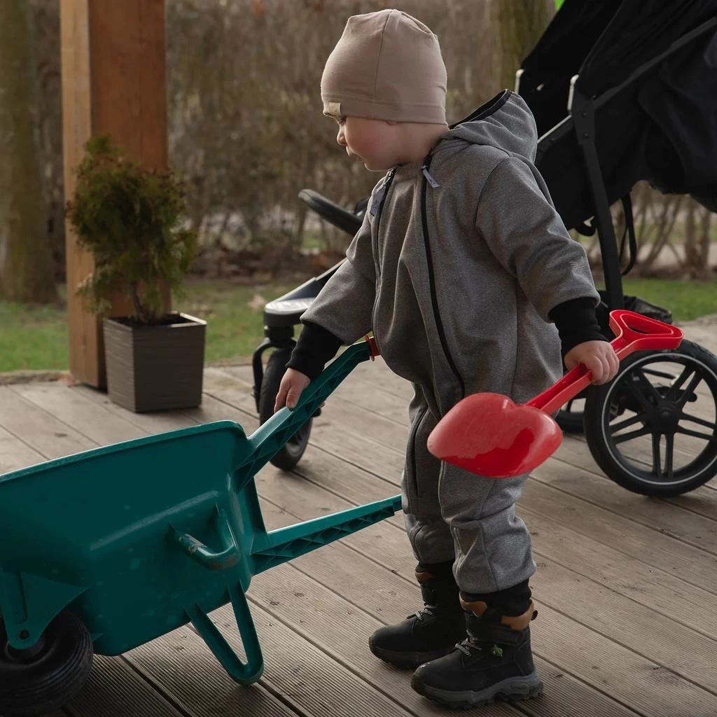 Rastúca softshellová kombinéza s fleecom Šedý melír. Nepremokavý a pritom priedušný softshell s fleecom v tej najvyššej kvalite ideálny aj pre malých lezcov a milovníkov kaluží a blata. Maximálne bezpečie zaistí 5 skutočných reflexných prvkov pri zníženej viditeľnosti doslova svieti, na hrudi, nohavici, na rukávoch a na kapucni jednoducho zo všetkých strán. Kapucňa so "šiltom" je podšitá bavlnou. Voľný strih overalu pre voľný pohyb pri objavovaní sveta. Pružný a dlhý lem podrží dĺžku rukávov aj nohavíc a navyše predĺži veľkosť. Dva dlhé zipsy zaistia ľahké a rýchle obliekanie aj prebaľovanie. Navyše chlapci čo už nemajú plienky vykonajú potrebu rýchlostí blesku. Navyše pútko na bezproblémové zavesenie aj na široký vešiak a tiež kompletné krytie zipsov.