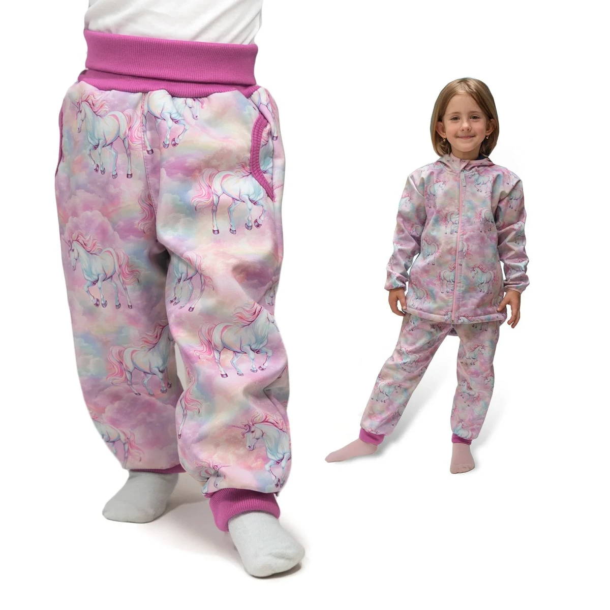 Rastúce softshellové nohavice Jednorožec ružová, Esito.