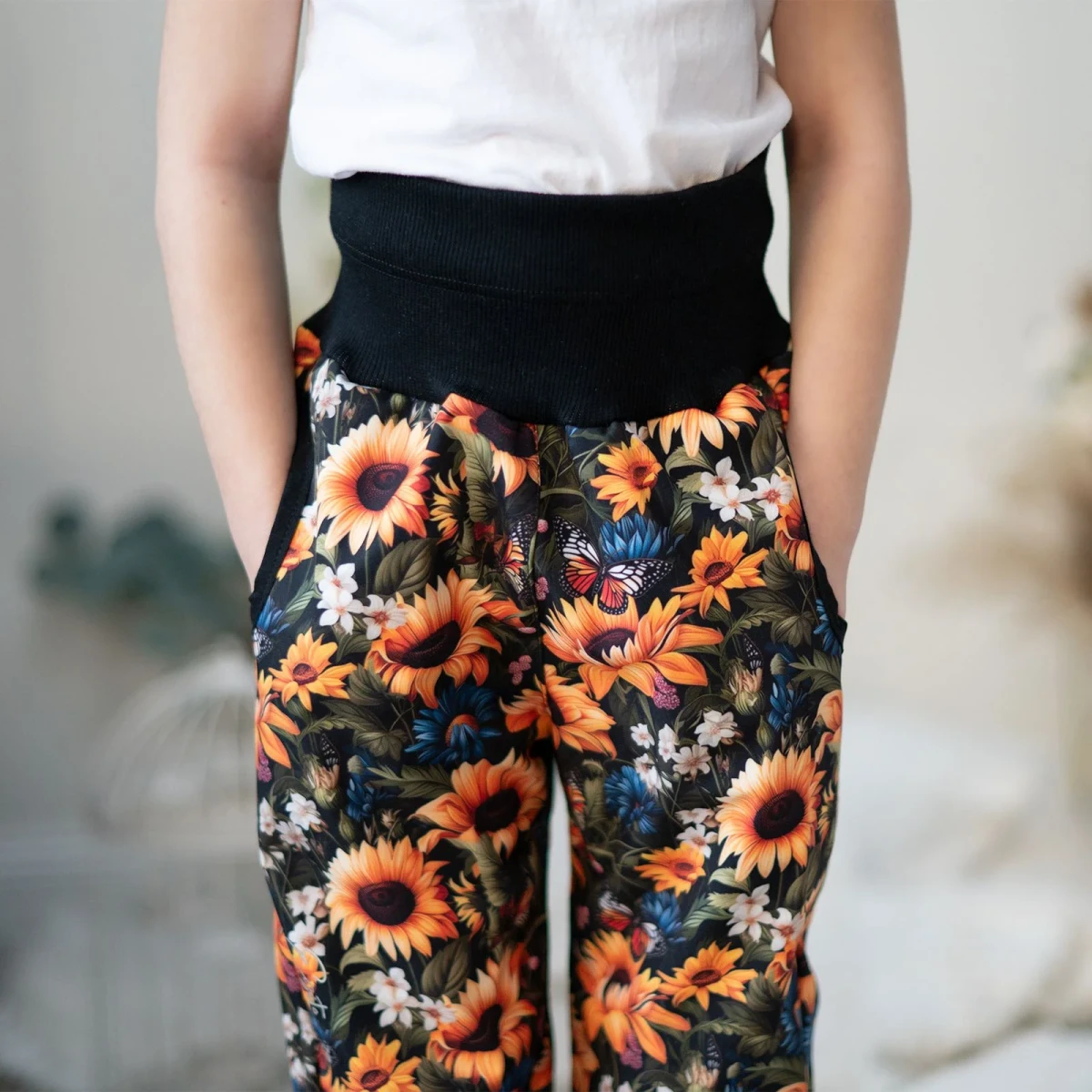 Unikátny vysoký bavlnený náplet v páse a na nohaviciach zaisťuje, že nohavice rastú s vašim dieťaťom. Vďaka elastickej gume, ktorú môžete prispôsobiť na mieru, nohavice pevne držia a nevytvárajú otlaky.