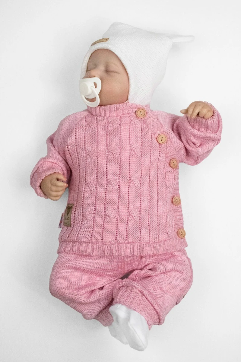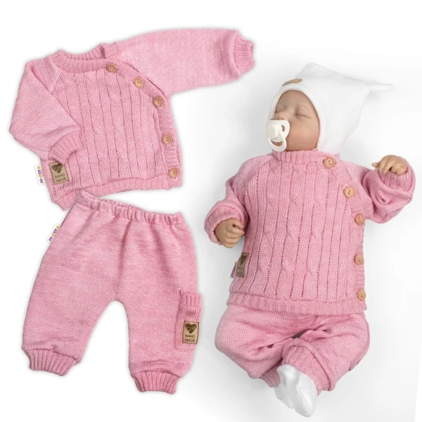 Rastúci pletený svetrík a nohavice s vreckom Hand Made 2D, Nature, ružová Veľ. 56/62