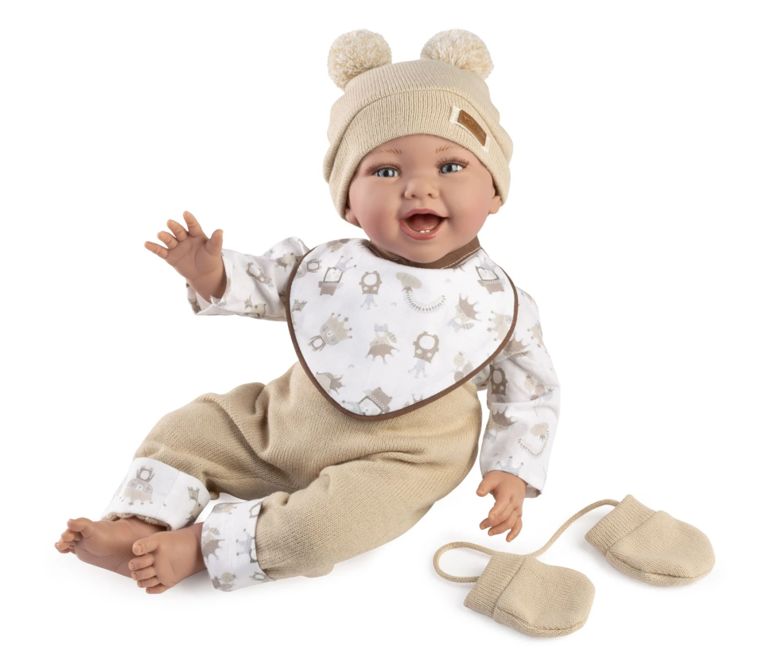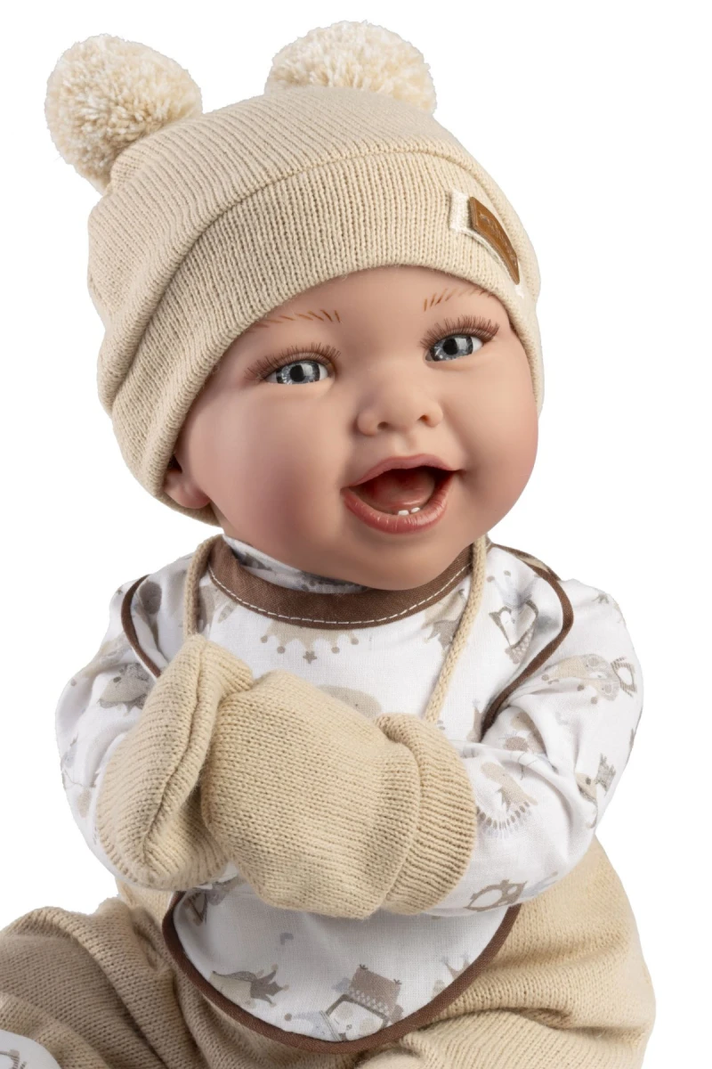 Bábika bábätko bez zvuku s mäkkým látkovým telom. Ruky a nohy sú k telu prichytené kĺbom. Bábätko je polohovacie a môže aj sedieť. Veľkosť 42 cm. Ručne vyrobené v Španielsku, balené v darčekovej krabici.