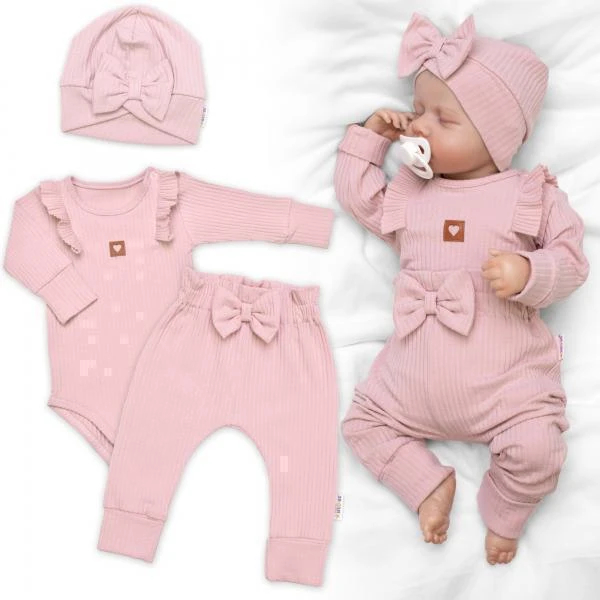 Rebrovaná rastúca súprava 3D Baby Girl Pudrovo ružová